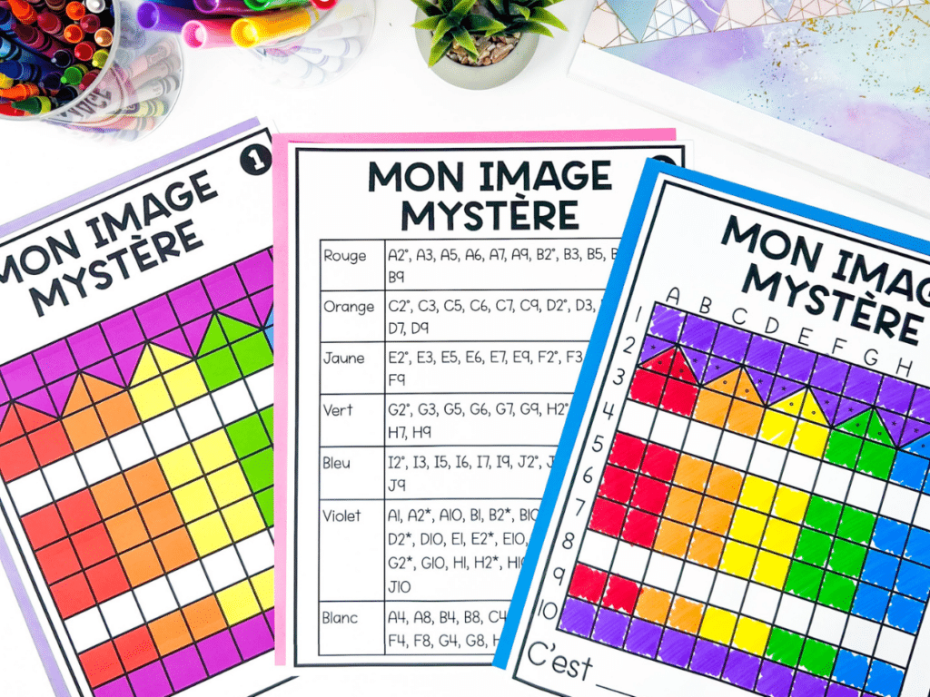 Another fun French back to school activity is a co-operative play activity. One of my favourite ways to do this is through mystery images.