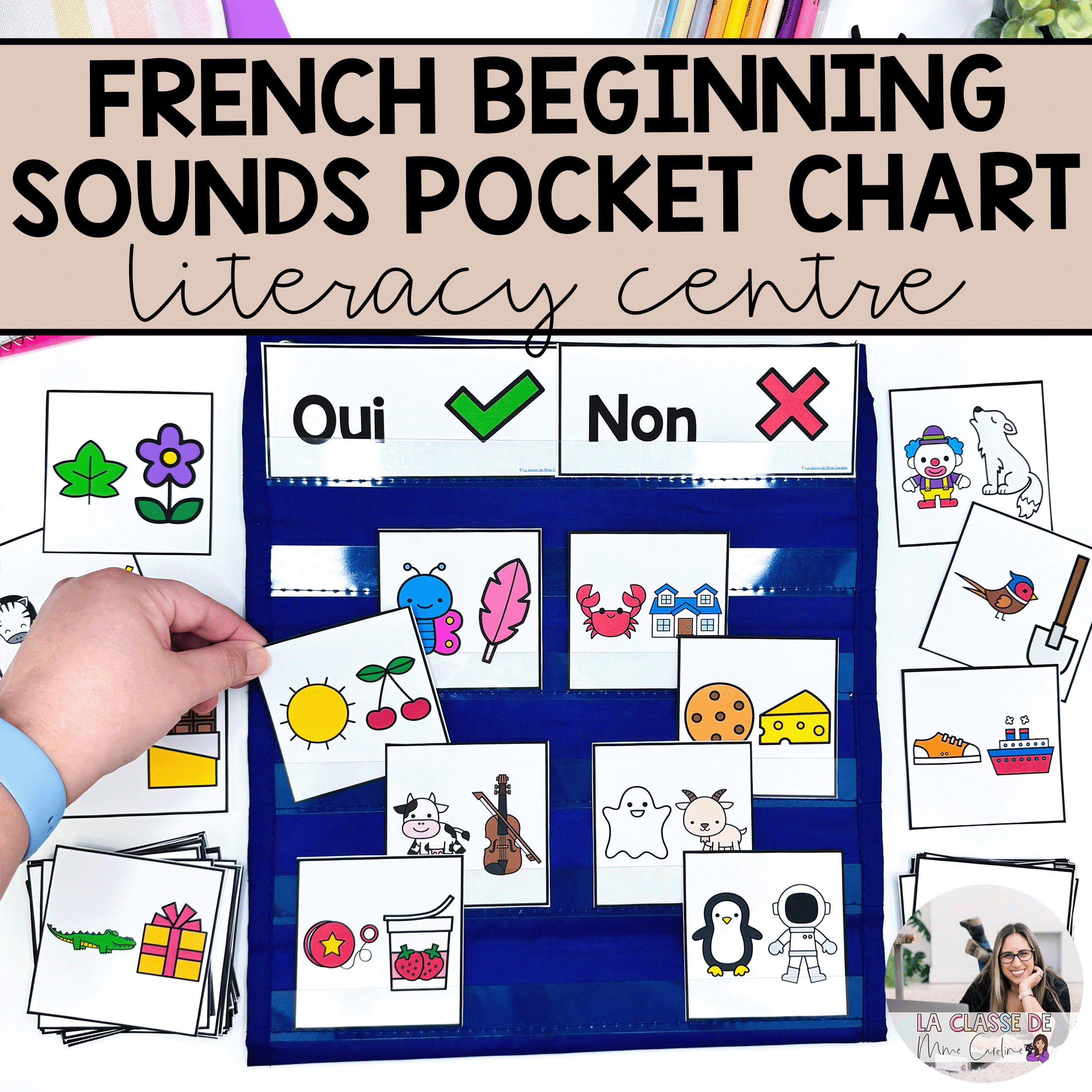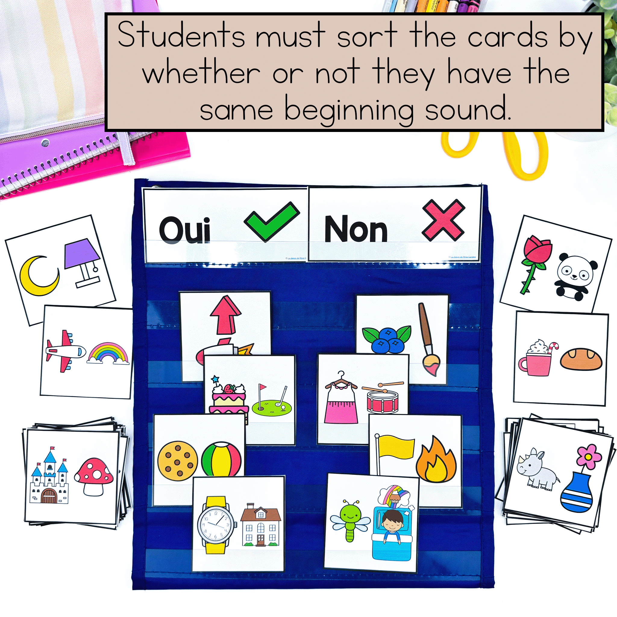 Get your students excited to learn about French beginning sounds with this French literacy centre! This French phonological awareness activity is a versatile way to teach your students French beginning sounds. It’s easy to understand, making this French phonological awareness activity perfect to do as a whole-group, and even for independent learning!