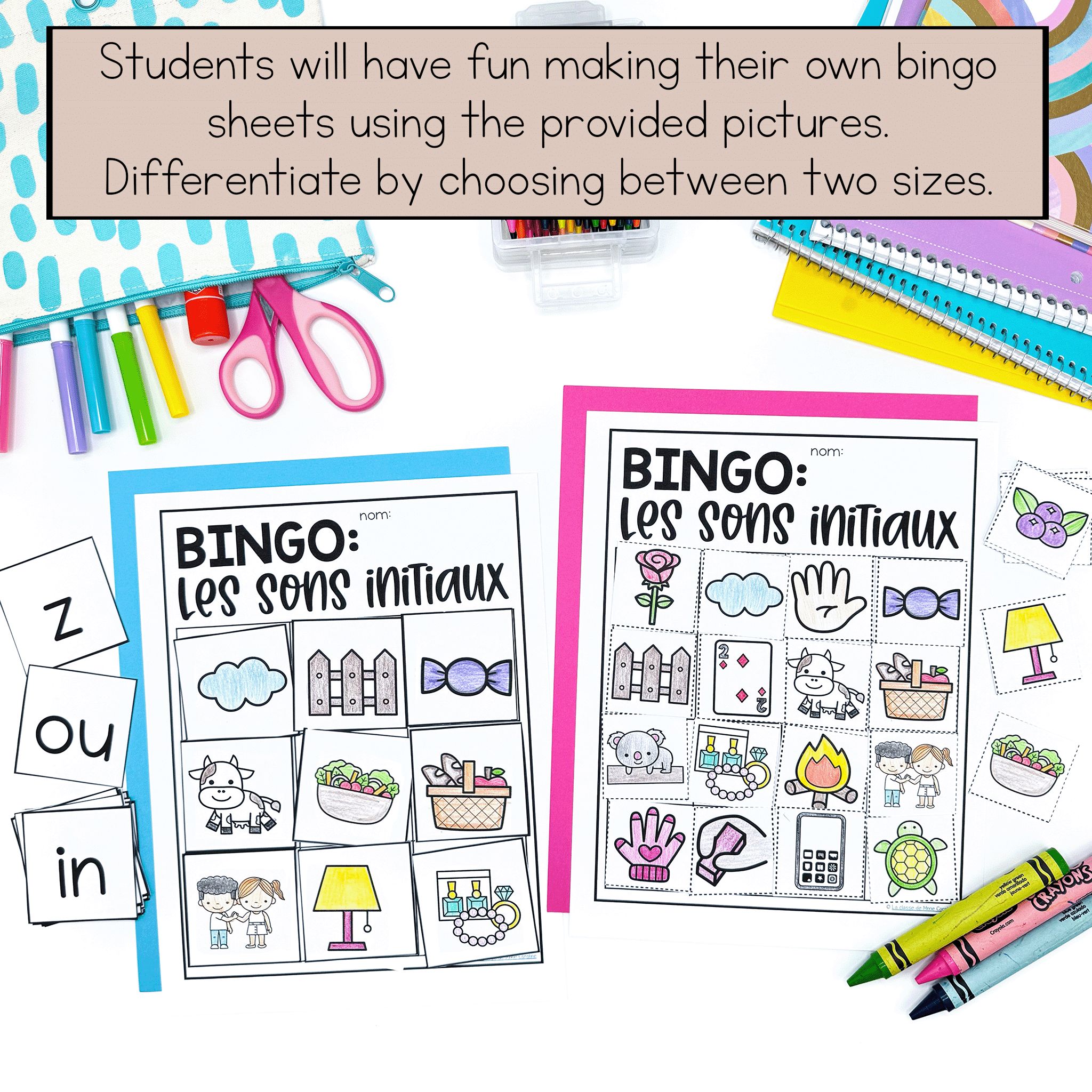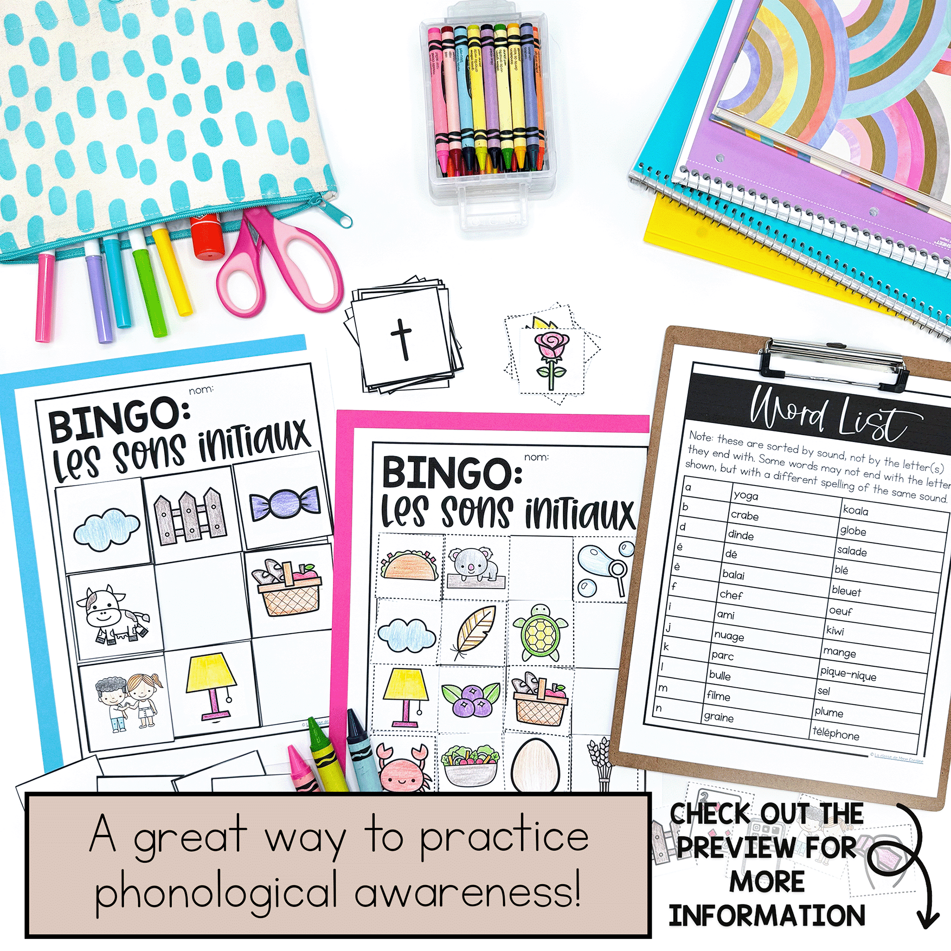 Make teaching ending sounds in French engaging with this beginning sounds BINGO activity! This resource includes 50 low-prep picture cards, perfect for teaching your students phonological awareness skills and to help them learn to read in French. The best part? This activity is aligned with the French Science of Reading!