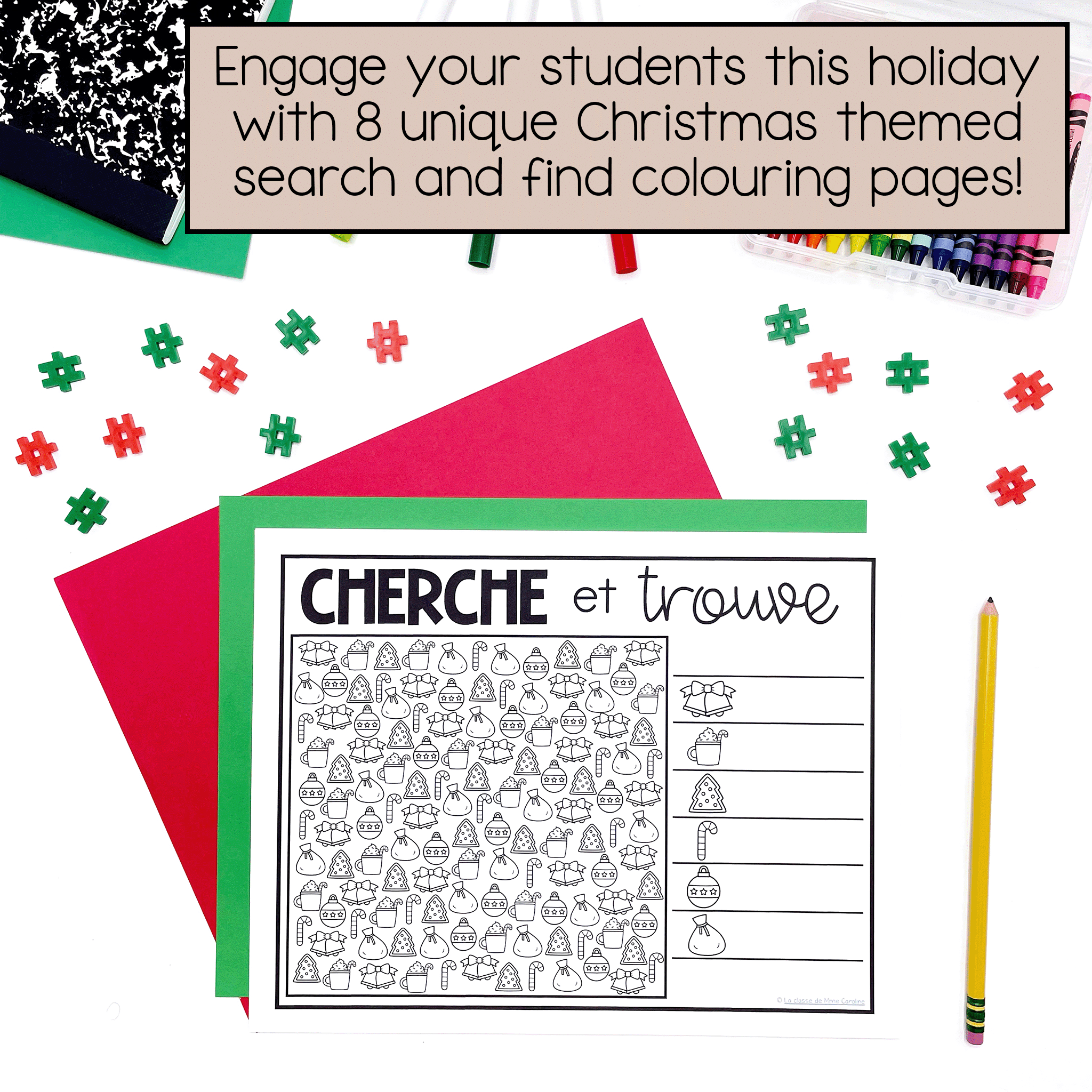 Whether you’re looking for an activity to help wind your students down, you’re looking for Christmas early finishers activities, or you just want to give them a quiet activity to work on, this French Christmas I Spy resource is a perfect fit.
