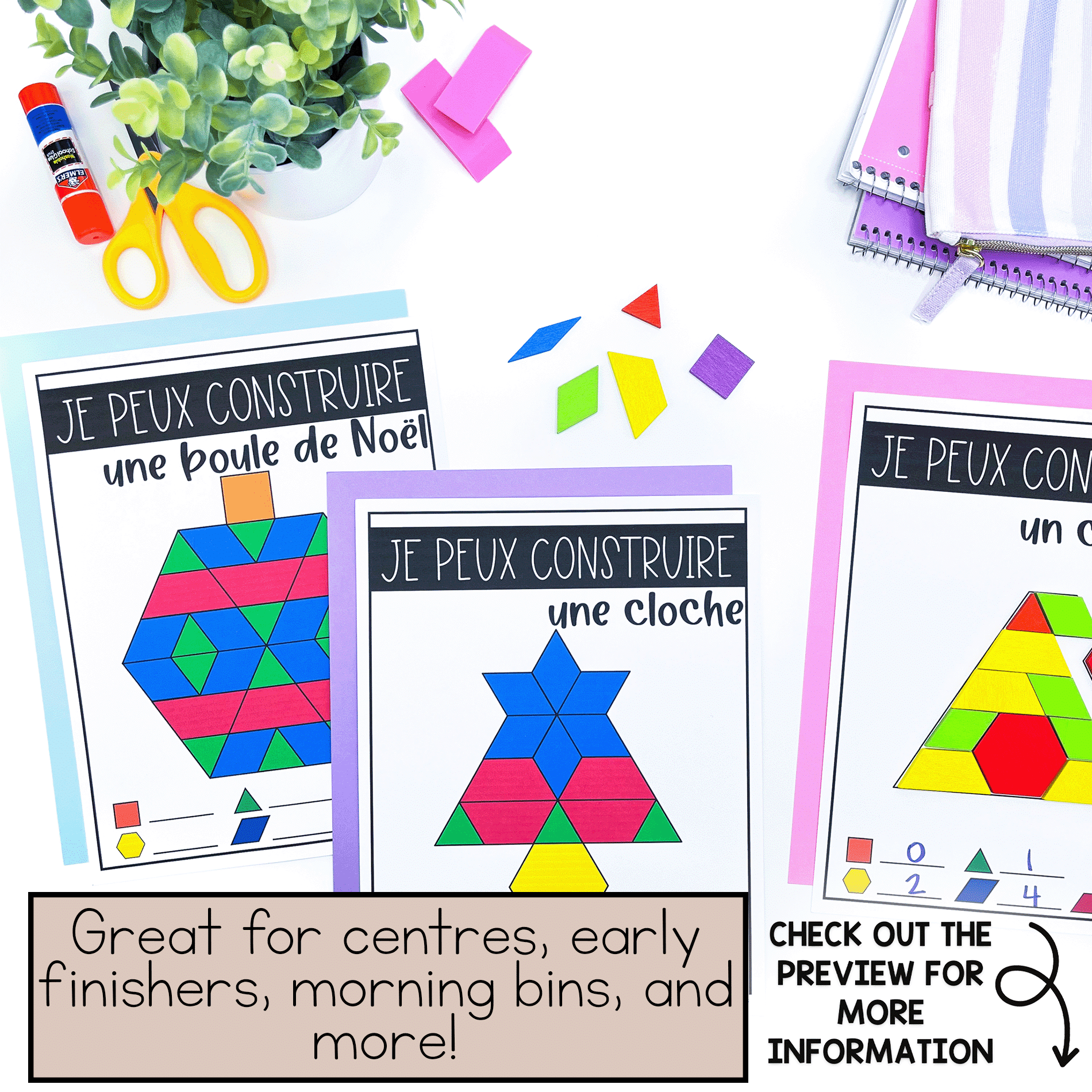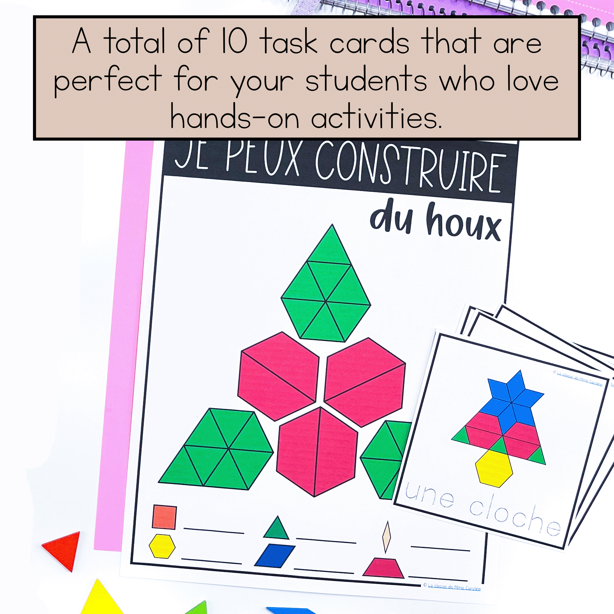Engage your students with these Pattern Block task cards in French! This easy to prep centre de blocs mosaïques are perfect for a math center, morning tubs, early finishers, or choice time!