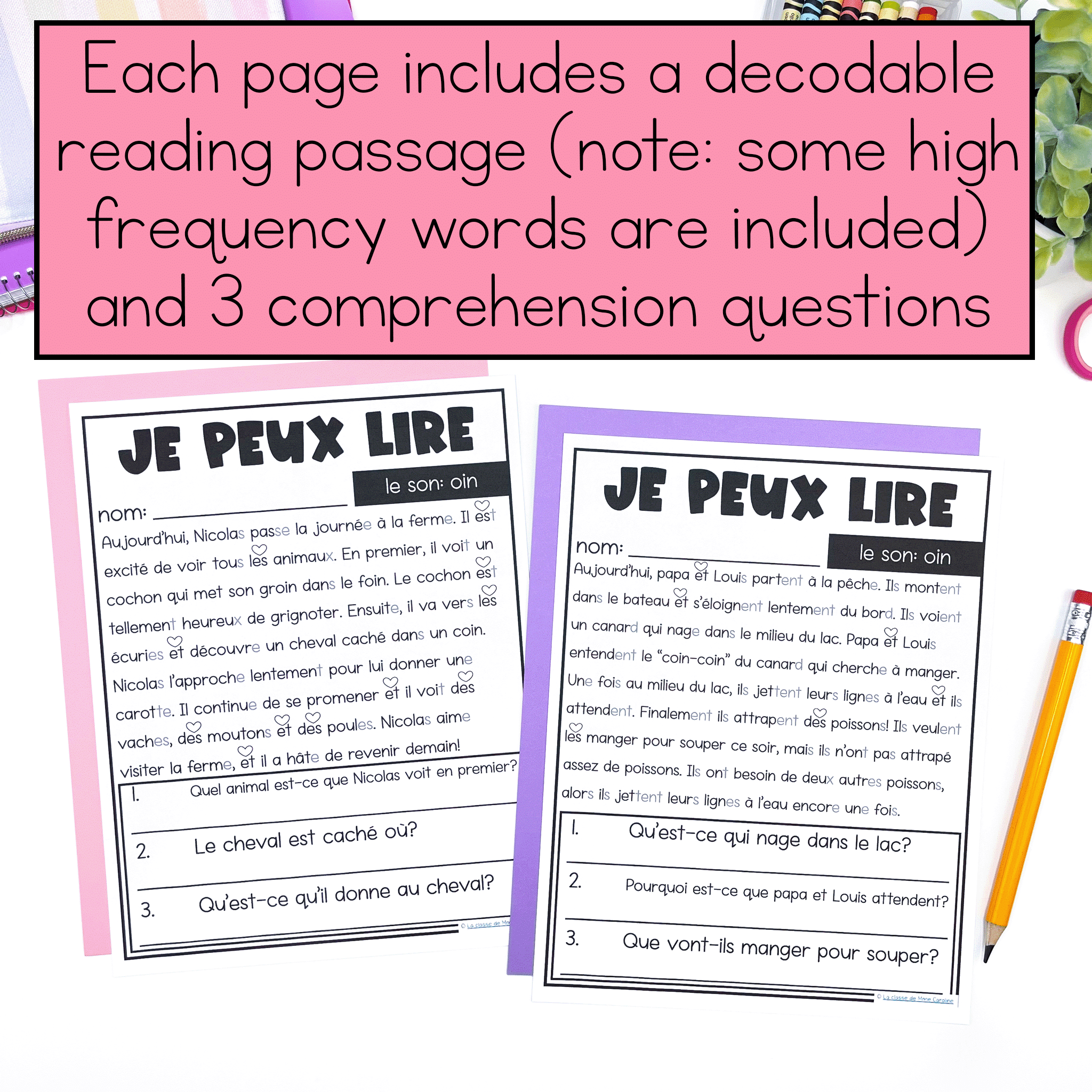 French decodable reading passages with comprehension questions for primary