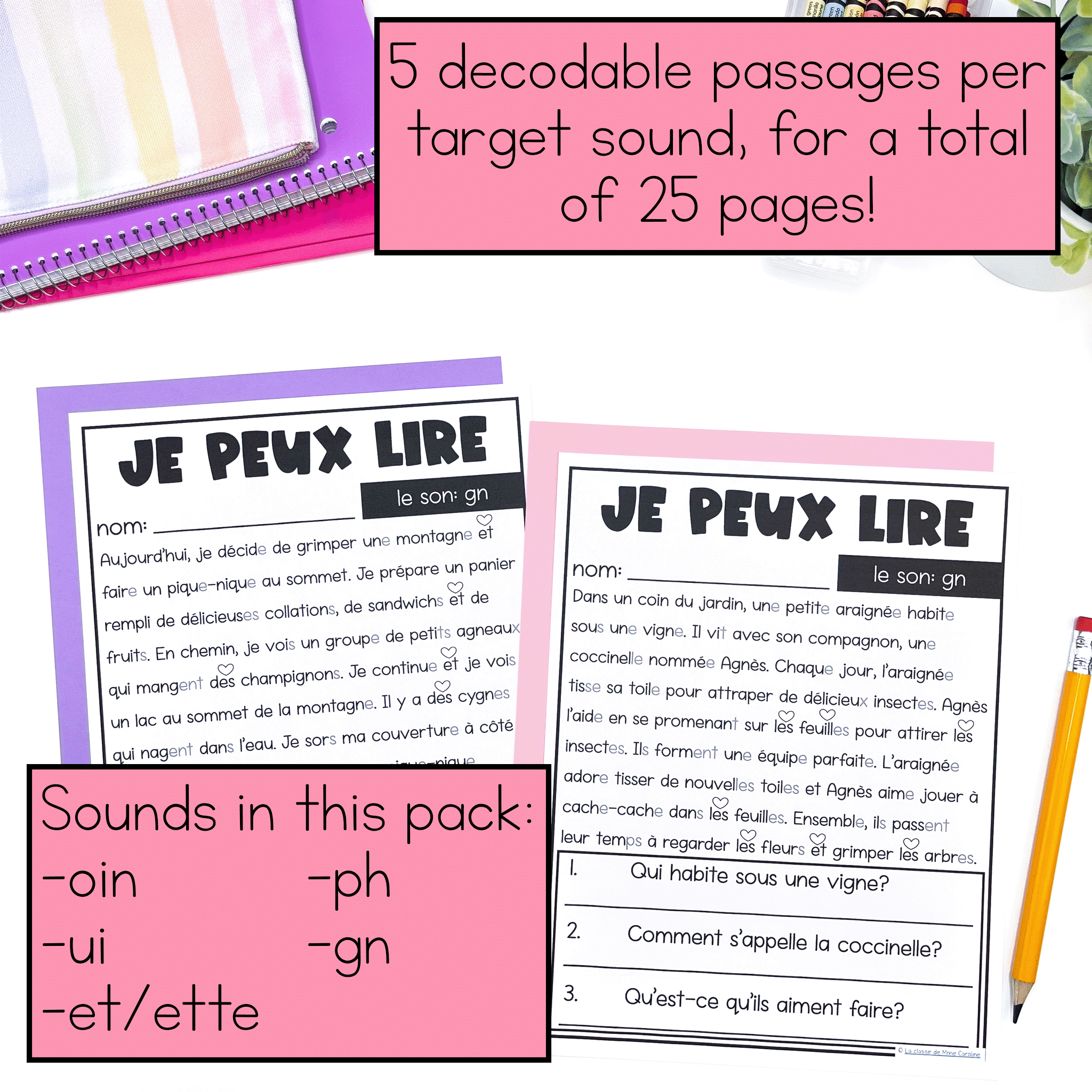 • 25 French decodable reading passages