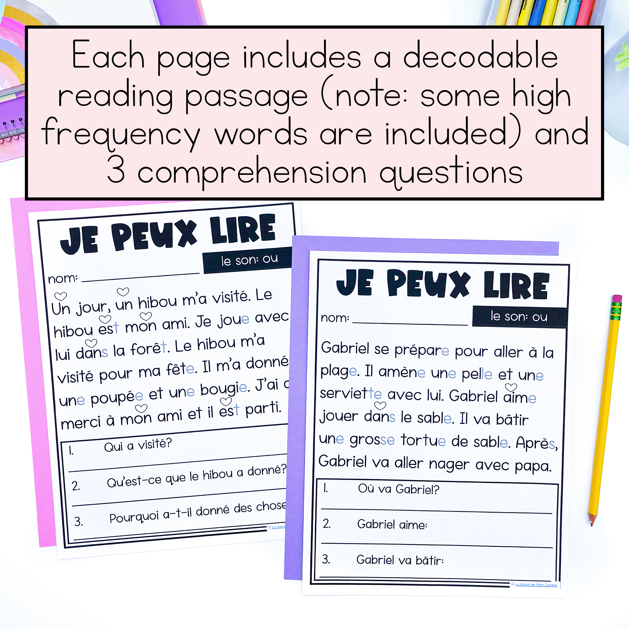 Stop using levelled readers with your early readers. They contain countless compound sounds that they cannot decode yet. Instead, have them practice their French reading using developmentally appropriate resources. As long as your students know their French letter sounds, and French accents they will be able to decode these passages!