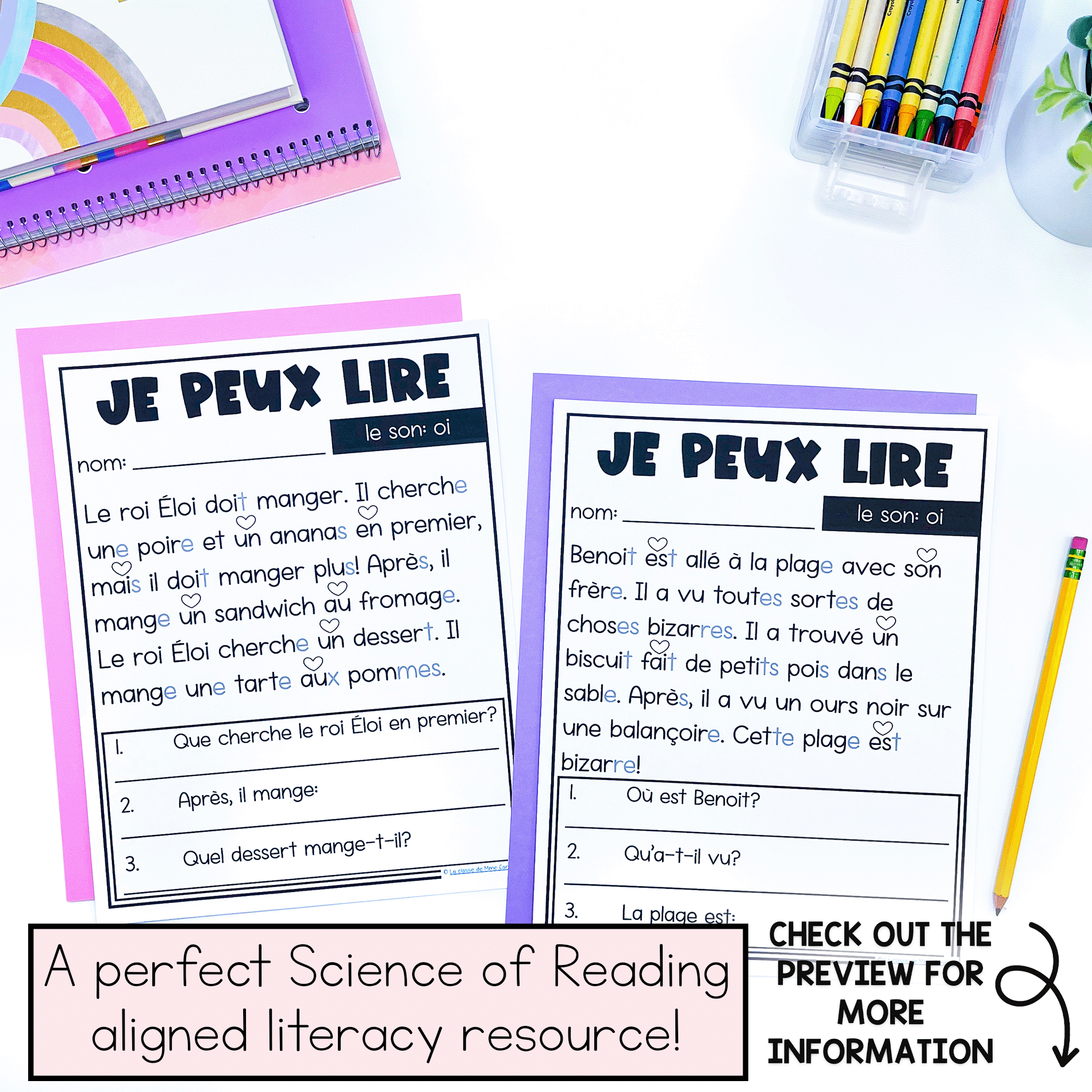 Looking for French decodable readers for your students who are learning to read? This pack of 25 decodable French reading passages with reading comprehension questions is perfect for students who are learning to blend sounds together, including accents. And the best part? It’s aligned with the French Science of Reading!