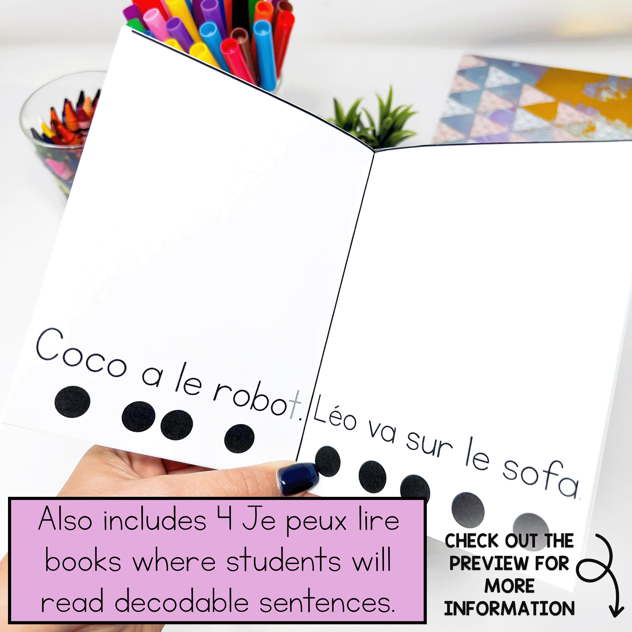 Your students will feel immediate reading success when they use les livres décodables. As long as they know their consonant sounds, they’ll be able to read these! Use these in your French guided reading groups, or with your at risk French readers!