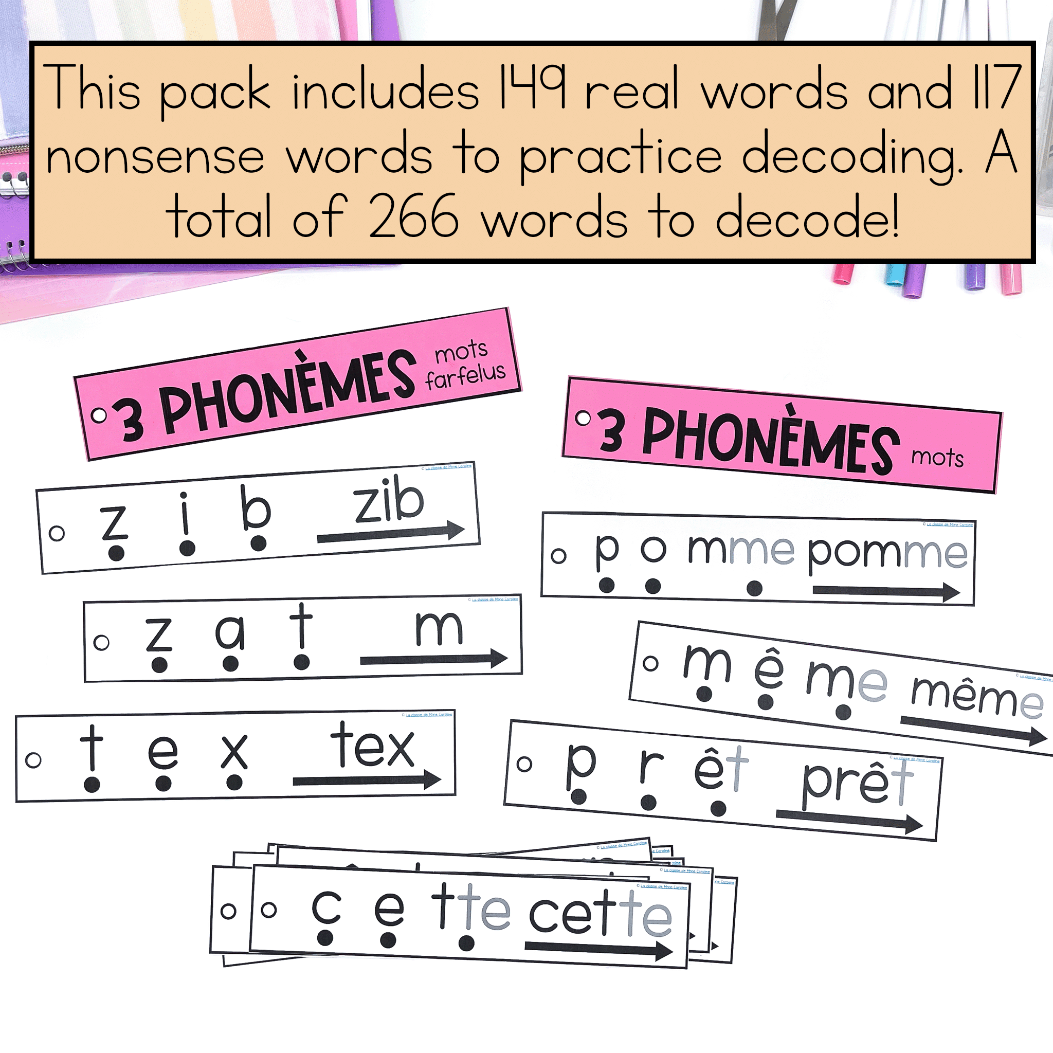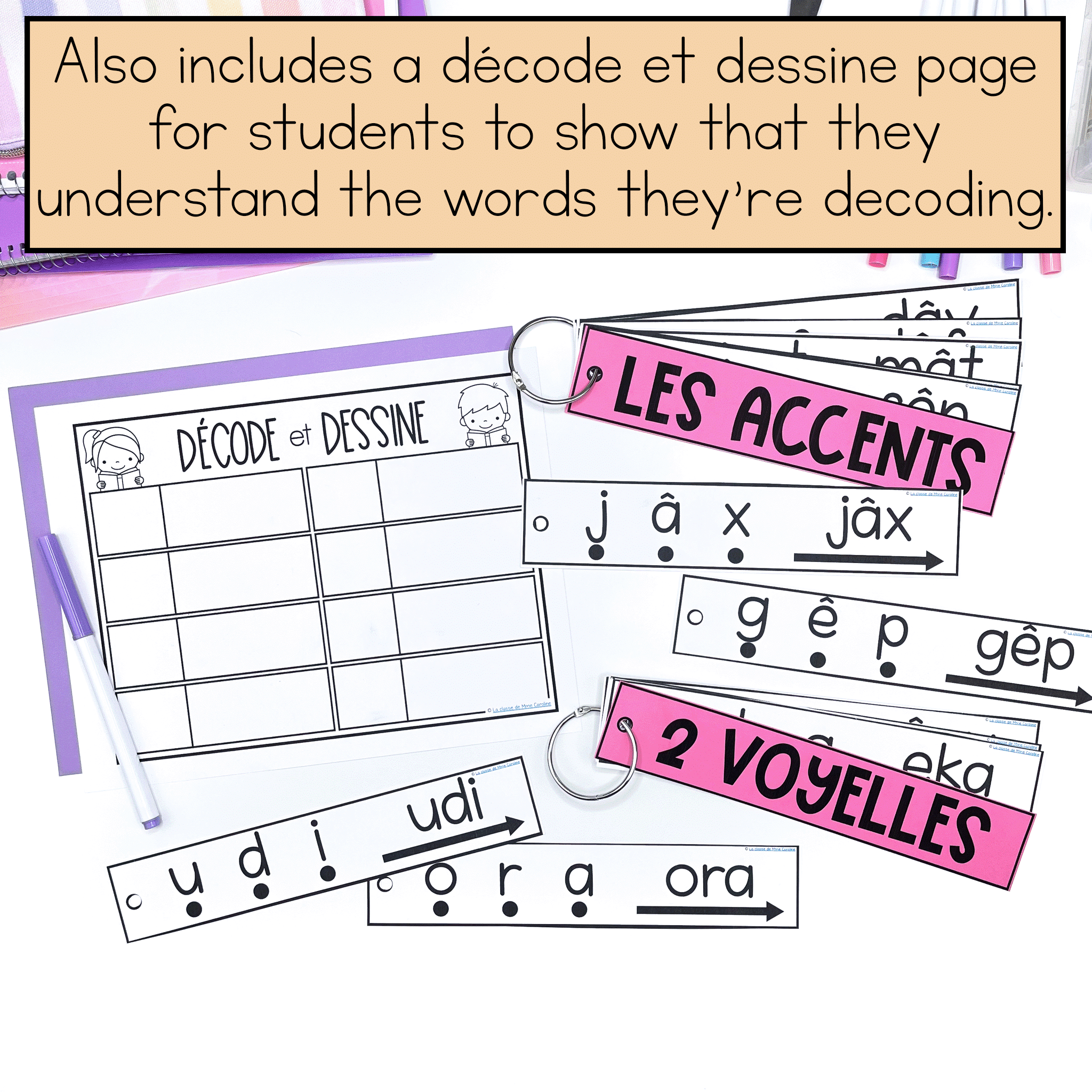 Help your students practice French reading with these French decoding strips. This set includes 266 decodable words, that use only French vowels and accents. With both real words and nonsense words, this set will have your students reading French letter sounds in no time!