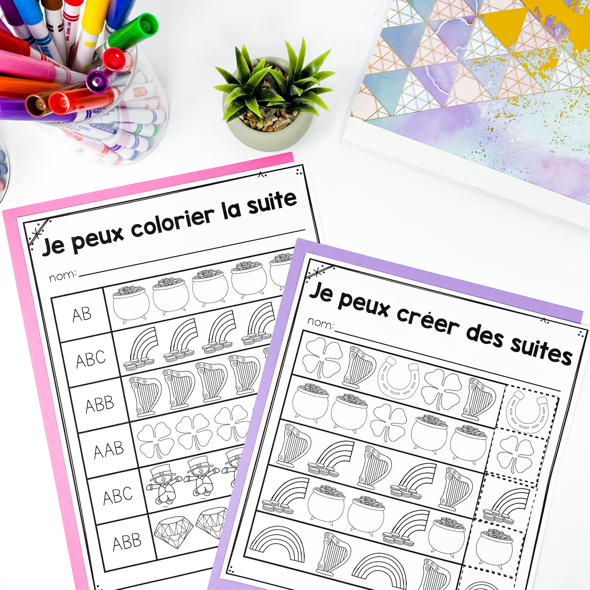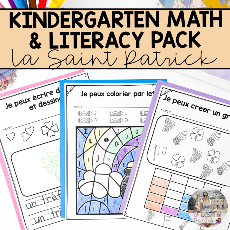 Are you looking for simple but engaging French St Patrick’s Day math and literacy worksheets for maternelle? This NO PREP kindergarten Math and Literacy pack is perfect for you! It contains 30+ pages of activities to work on various math, literacy and fine motor skills. Your kindergarten students will love the la Saint Patrick theme while they work on their math and French skills!