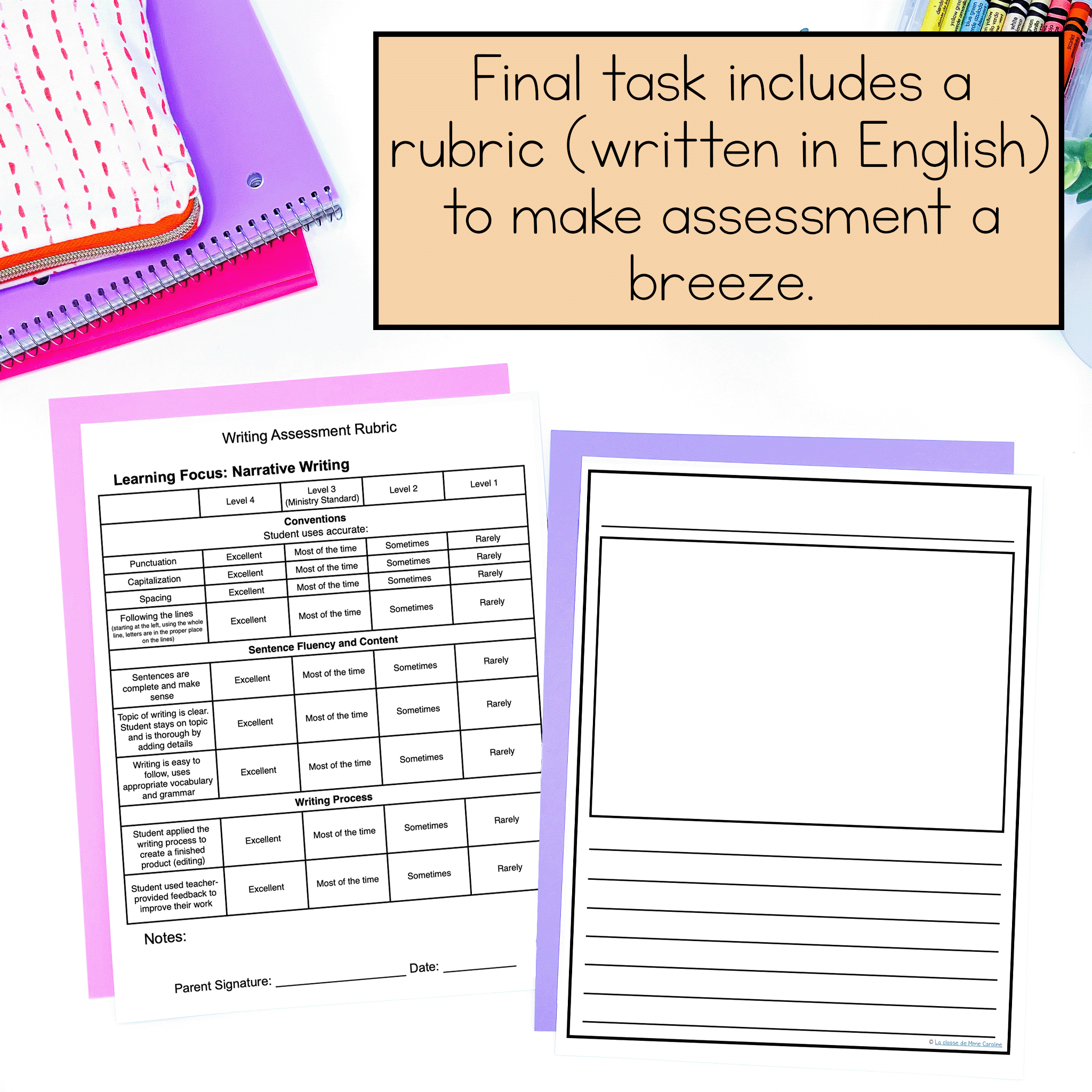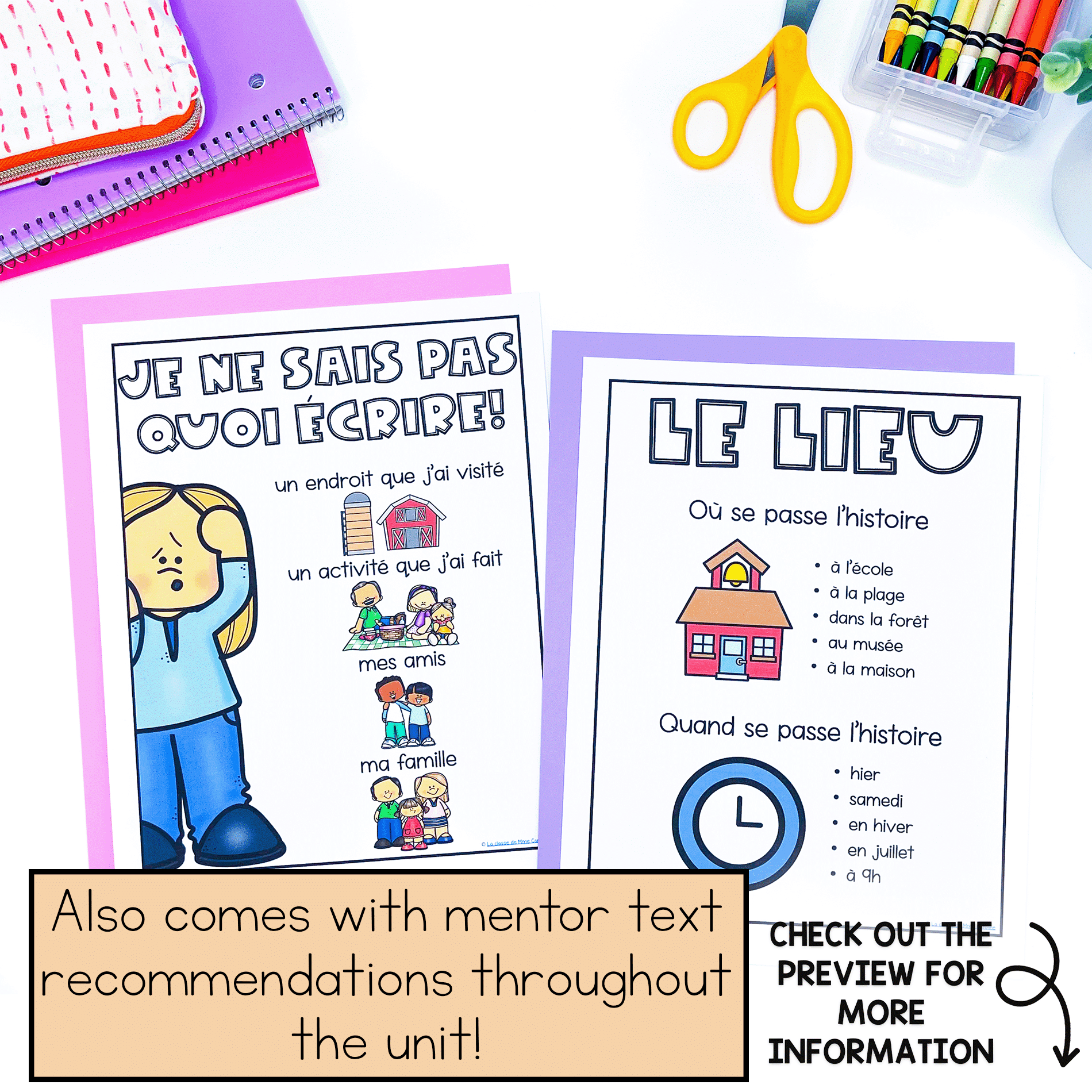 Make teaching French writing effortless with this French narrative writing unit for Grade 1, Grade 2 and Grade 3! This pack includes 9 French writing lessons, including teacher-guided modelling and writing tasks.