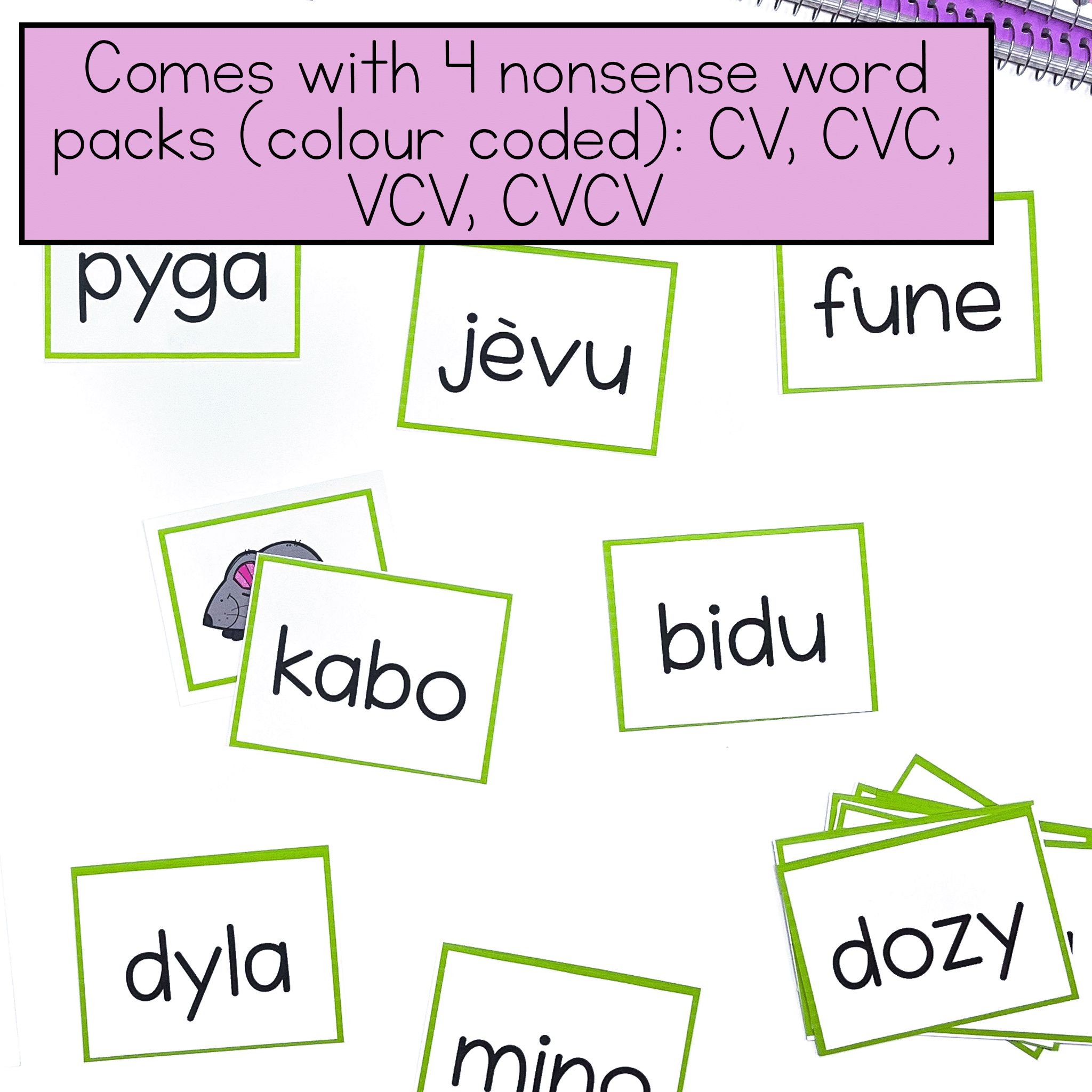 - Consonant-Vowel-Consonant words (e.g., pac)
