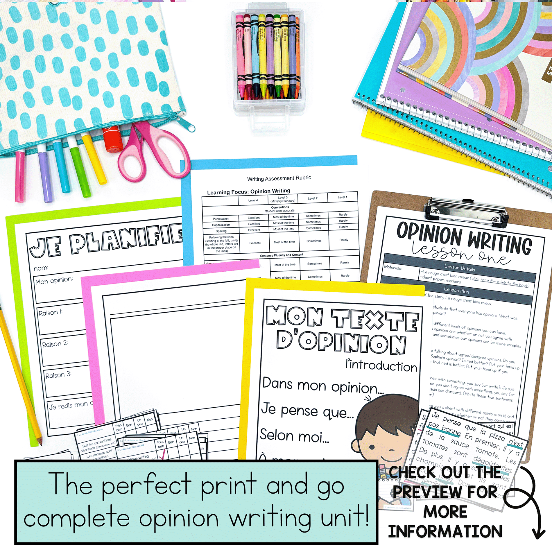 French Opinion Writing Unit for Primary Students | Écrire un texte d’opinion
