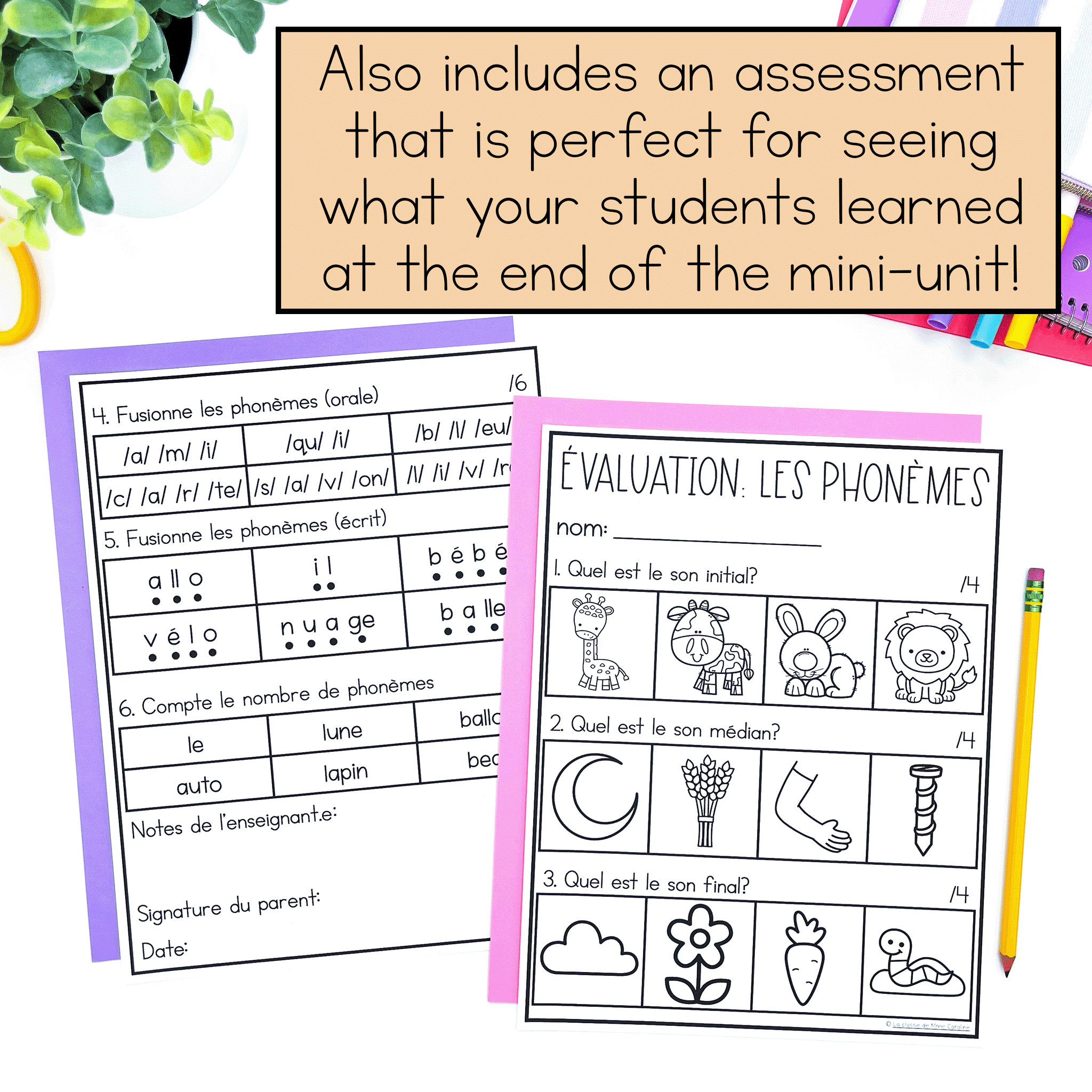 Lead your students to learn important phonological awareness skills needed in order to learn how to read in French. With this resource, your students will quickly become pros at les phonèmes! And the best part? It comes with a French syllable assessment at the end!