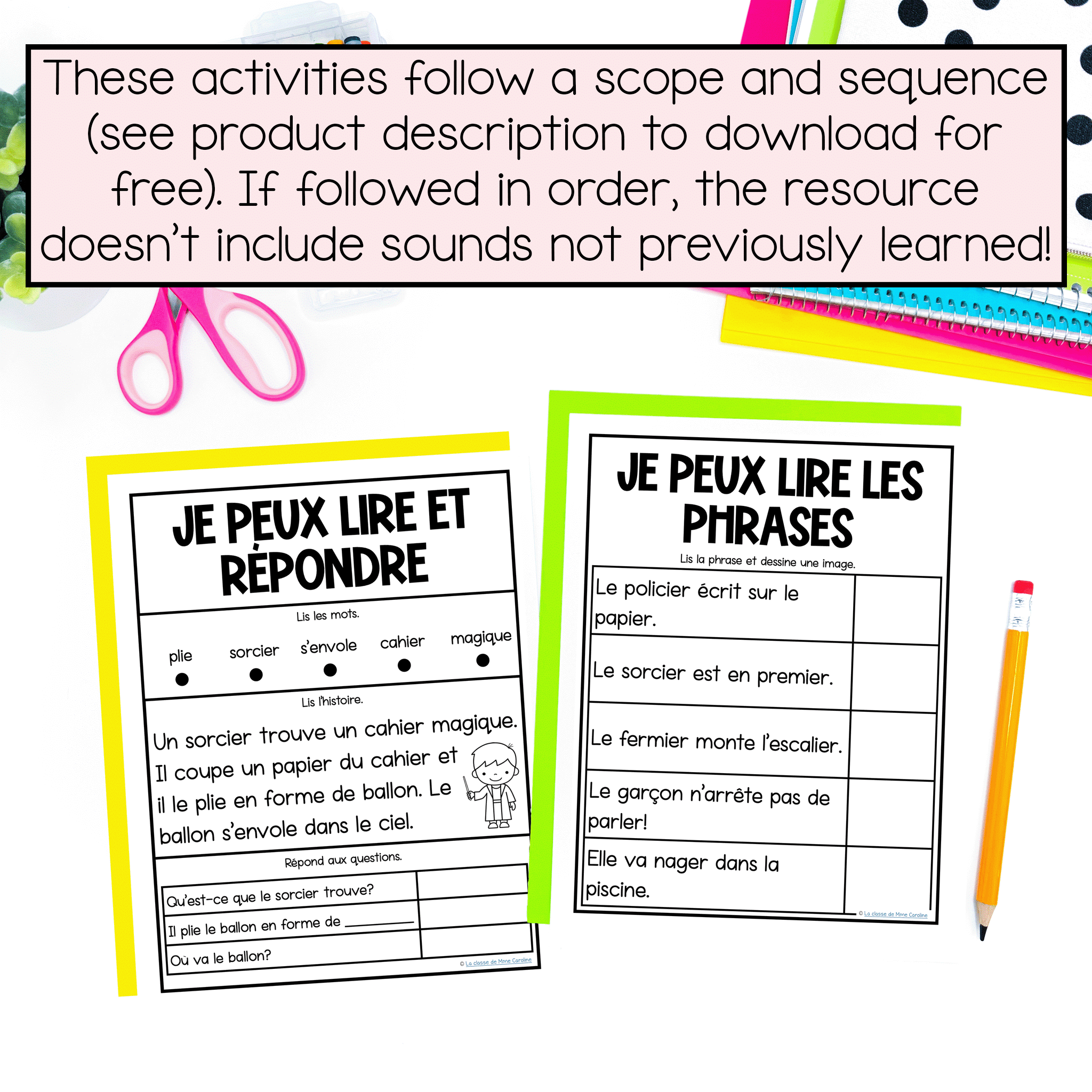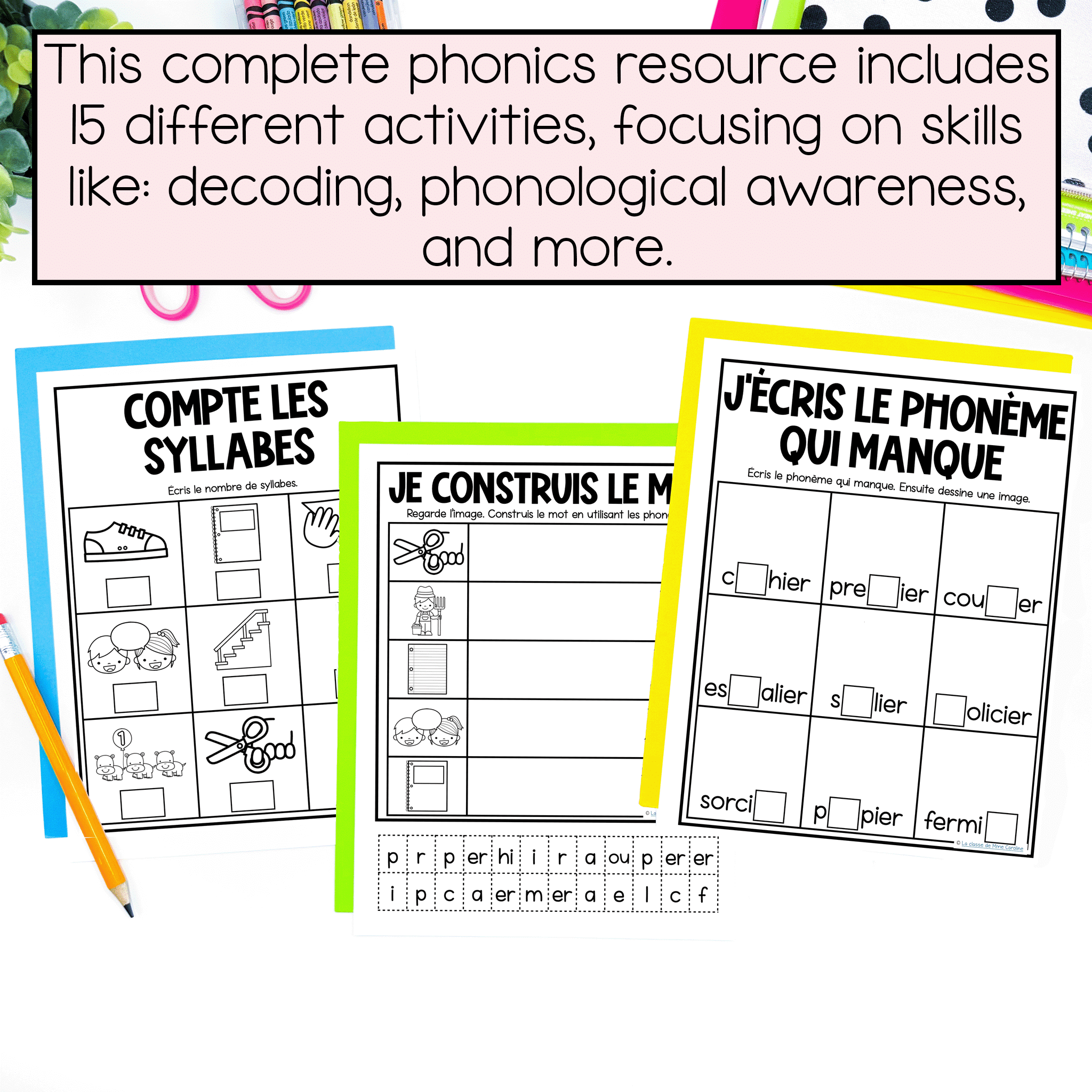 The included French Phonics Activities are: