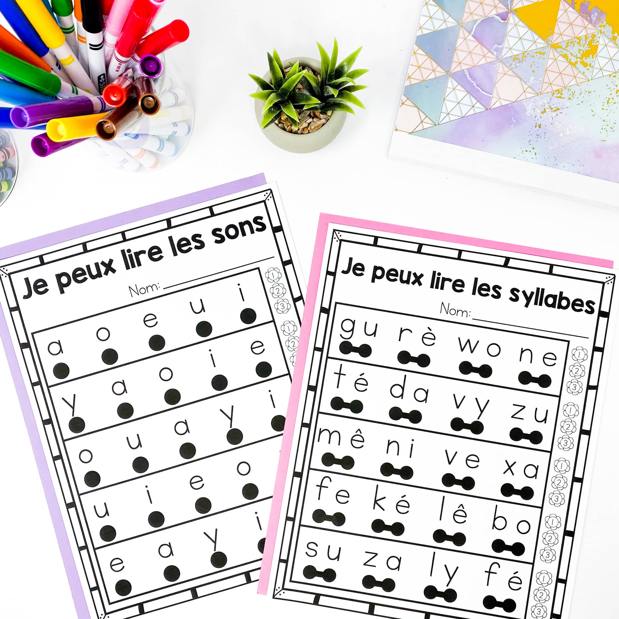 This French reading intervention pack follows the science of reading progression and breaks all sounds into phonemes. This helps students associate letters/letter combinations with the sound they make.