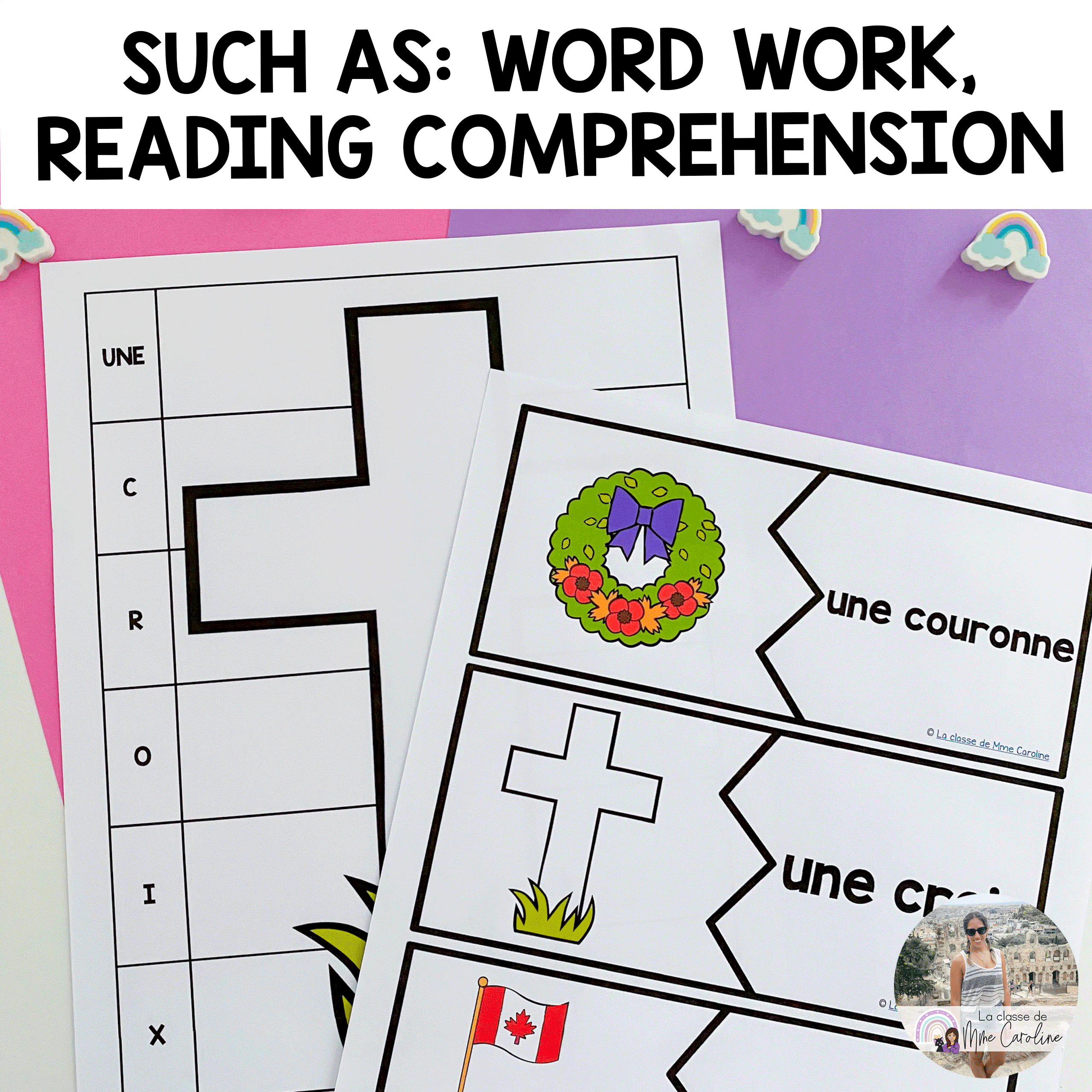 Are you looking for French Remembrance Day Centres to give your Grade One, Grade Two and Grade Three students the opportunity to practice spelling, word work, reading and writing activities and mix it all up with some fun games?! With great vocabulary, booklets, writing activities, and more, this Product includes 10 centres!