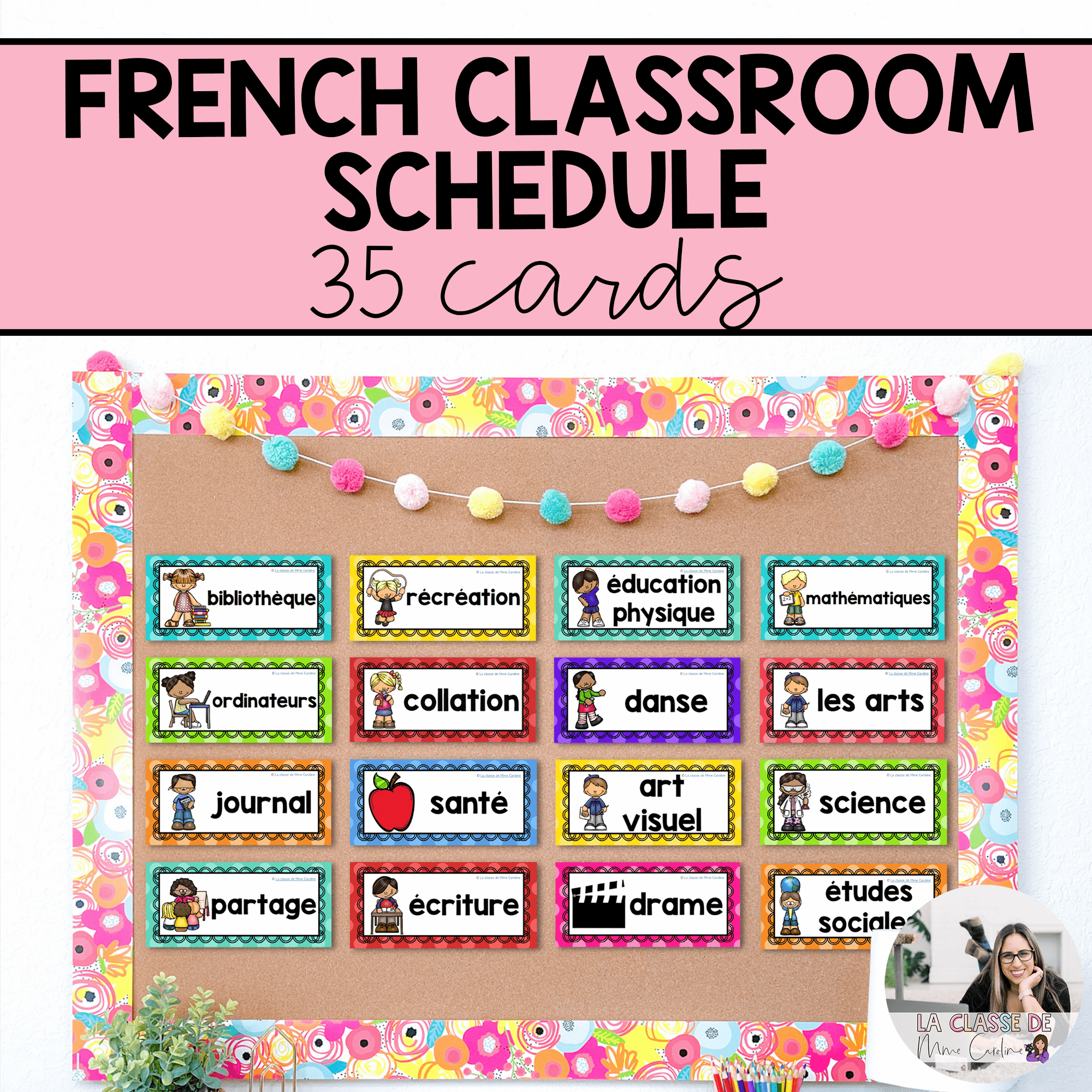 French Schedule Cards are perfect for a daily agenda! I have included Horraire, Période 1-6, Le dîner, La collation, récréation so that you can easily make a daily agenda with these cards. 30 subject cards included!