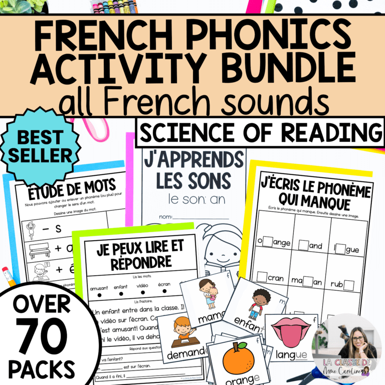 Get the complete set of French Phonics Activities that are aligned with the Science of Reading. These ready-to-use phonics activities include a large variety of activities (15+!) per sound pack, making it perfect for your French phonics program!