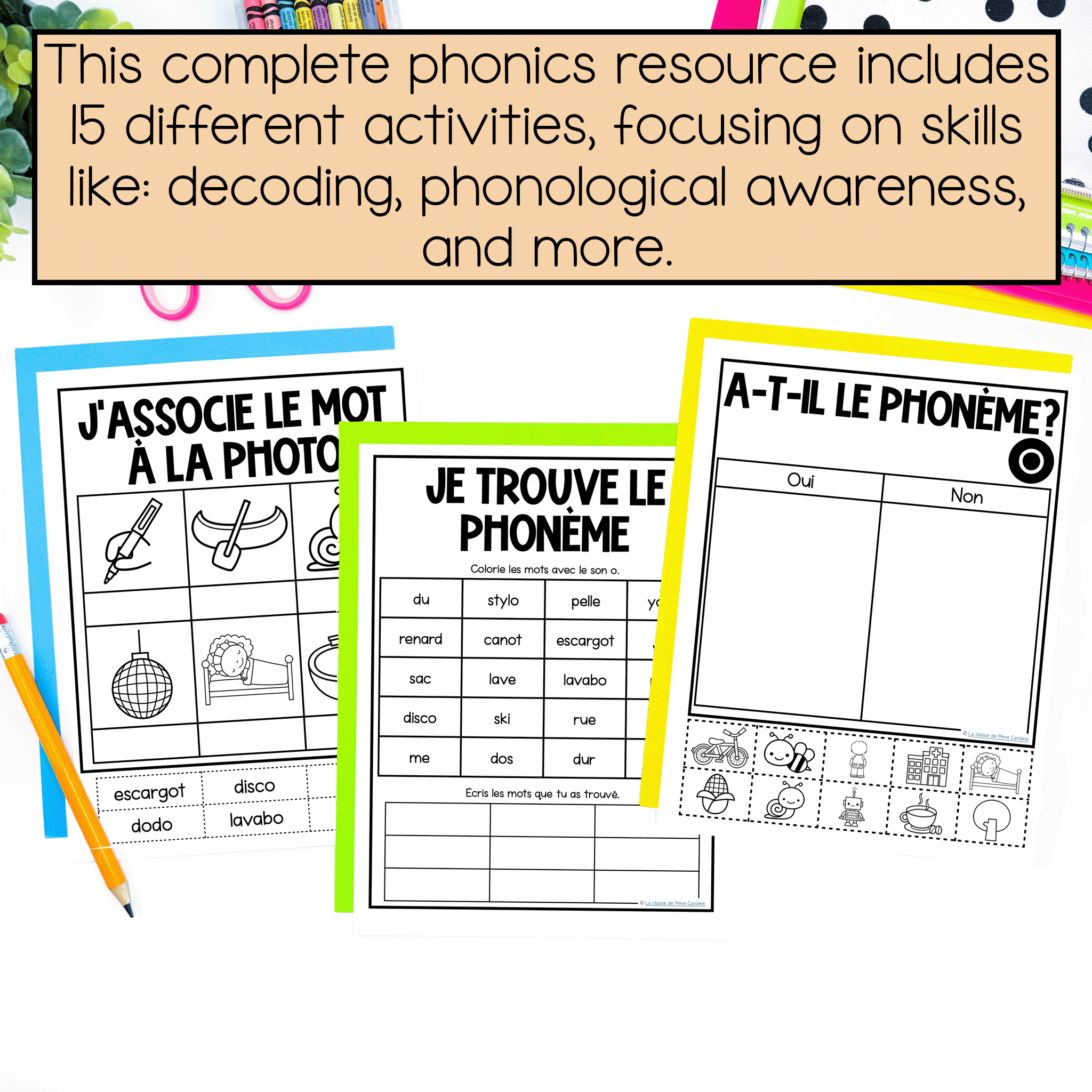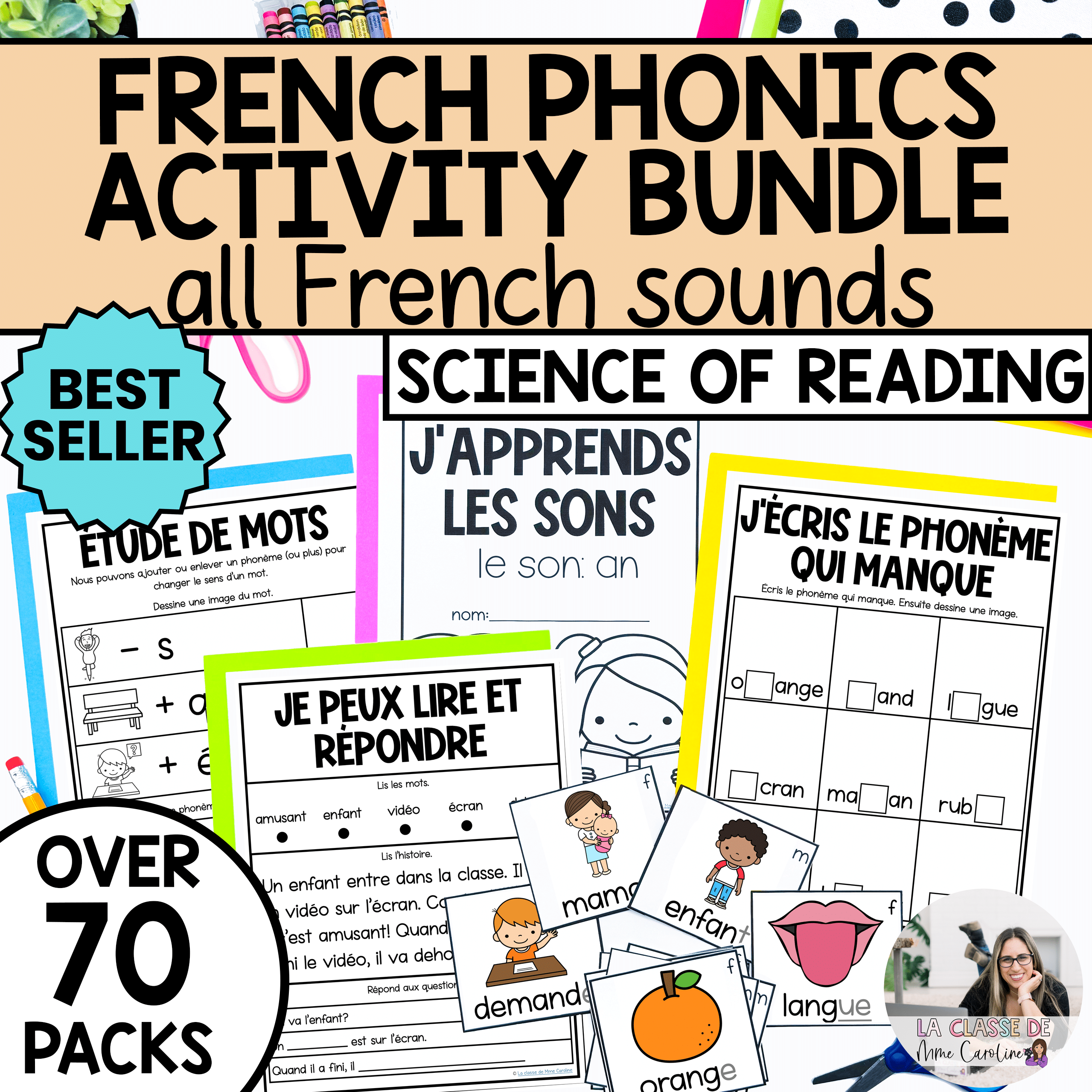With 70 packs included, this bundle of French phonics activities covers all letter sounds, digraphs, trigraphs, and even consonant blends. The activities included work on a variety of skills, such as phonological awareness, phonemic awareness, decoding, and more.