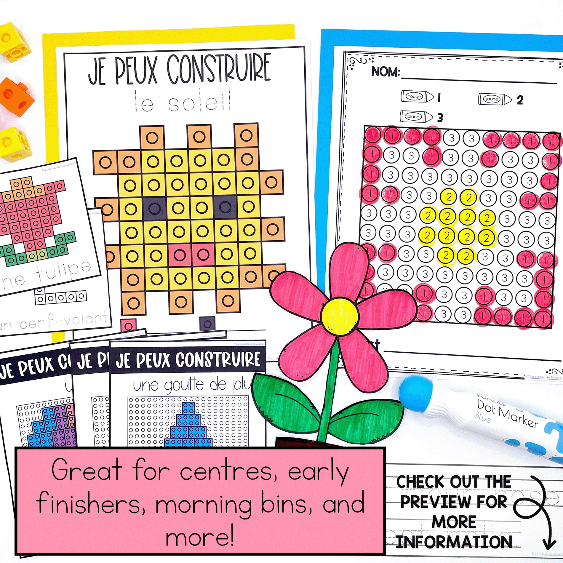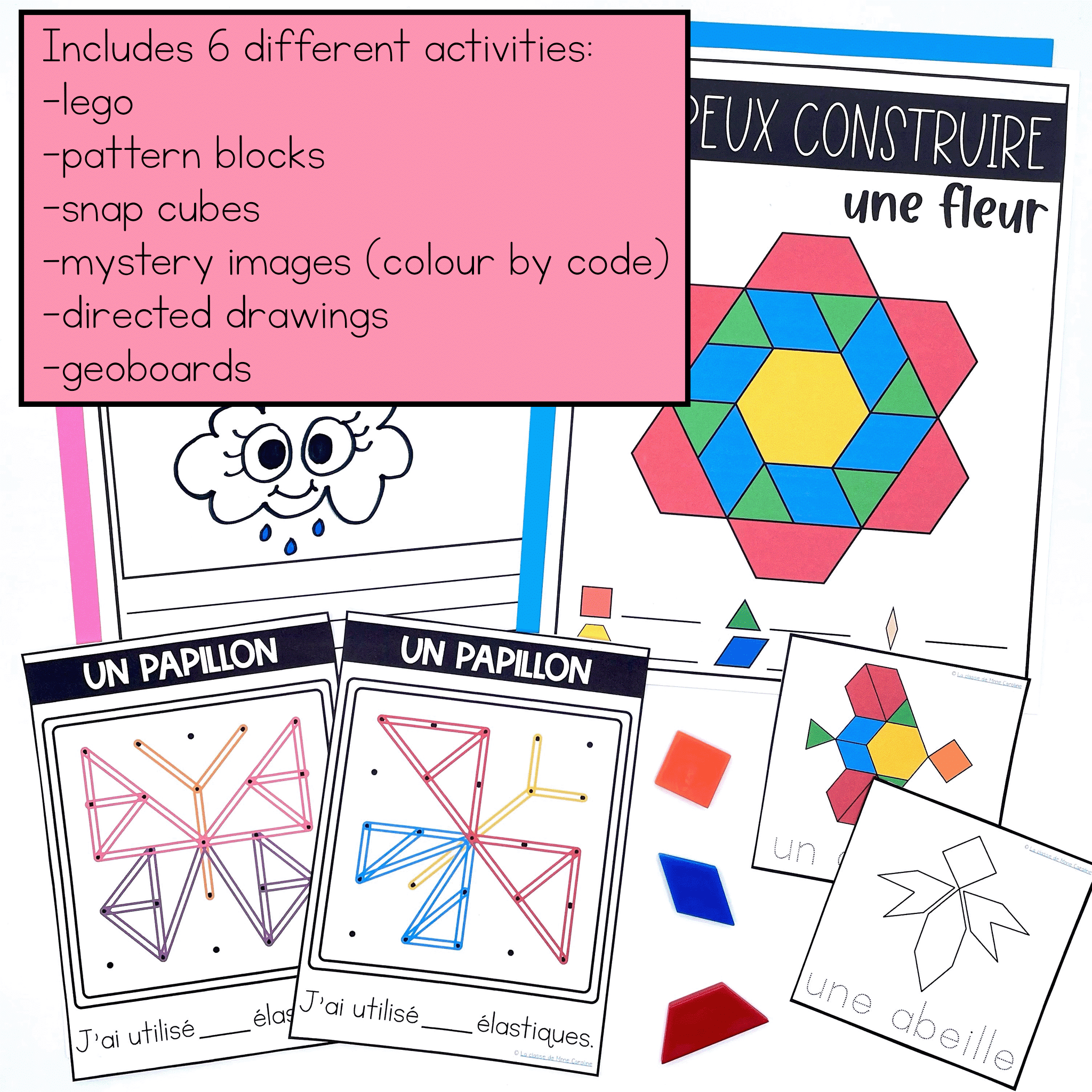 Your students will love the variety of activities included in this bundle. You’ll love that they have engaging activities to work on. You’ll never have to hear j’ai fini again! These activities are perfect for maternellepremière année, or deuxième année
