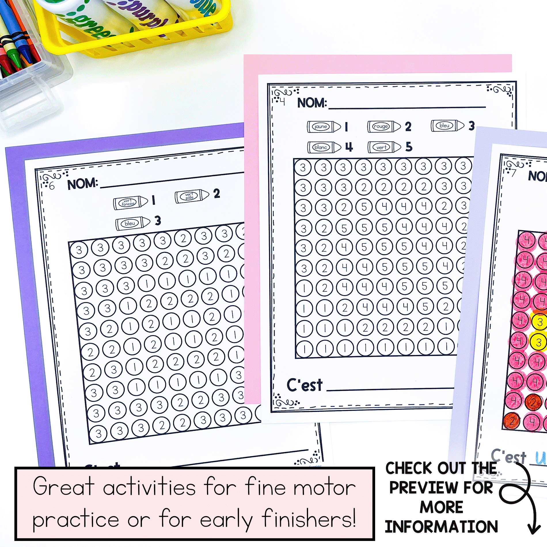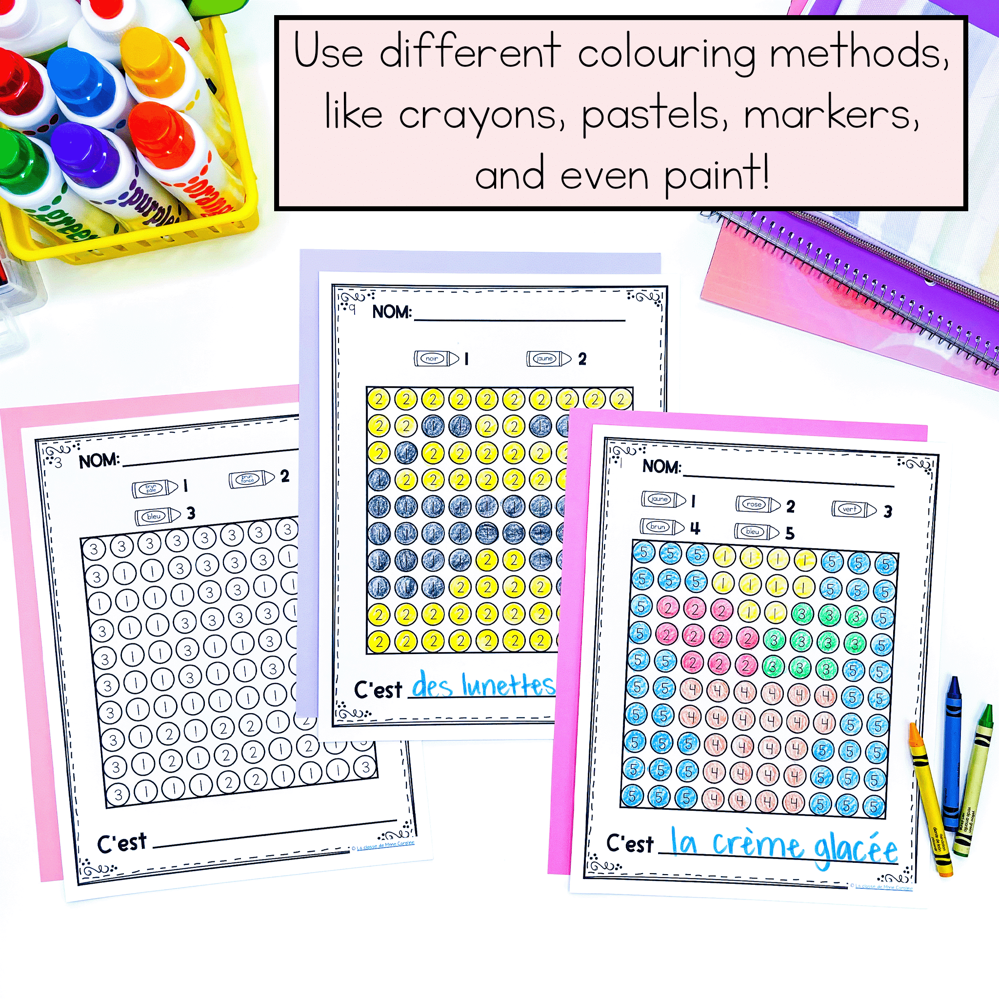 Your students will love practicing their fine motor skills through this colorie par code. Once they finish colouring the picture, based on the code, they will discover a l’été vocabulary item. They’ll then need to write what it is at the bottom of the page.
