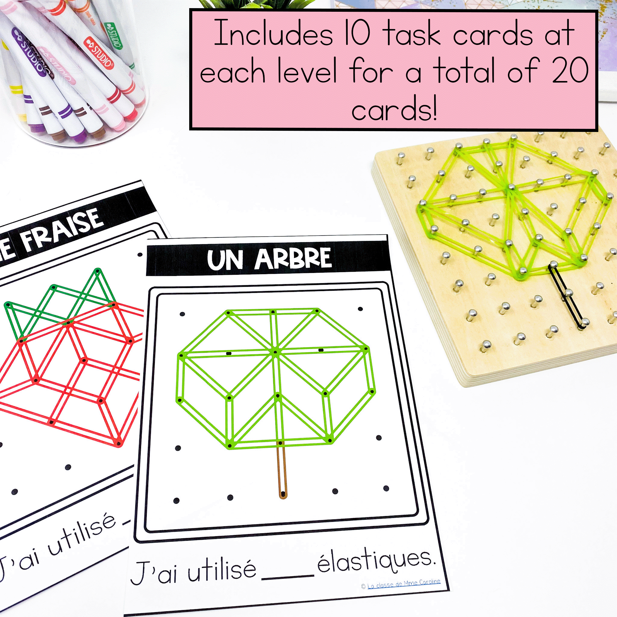 Engage your students with these Geoboard task cards in French! These easy to prep centre de géoplans are perfect for a math center, morning tubs, early finishers, or choice time!