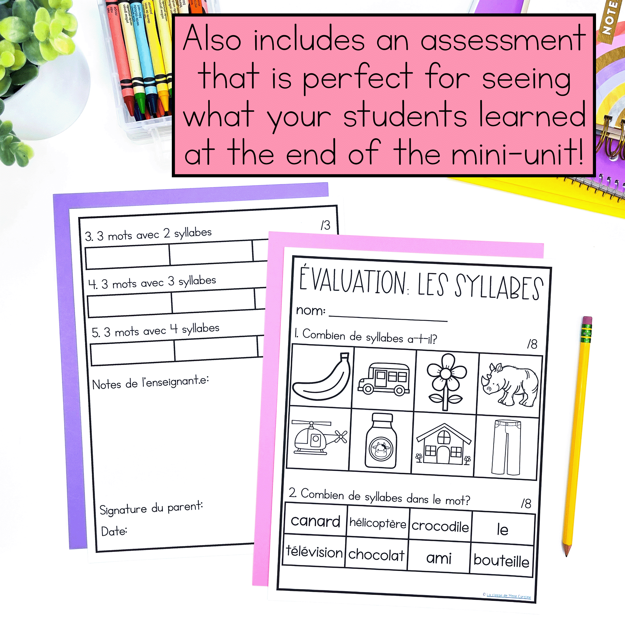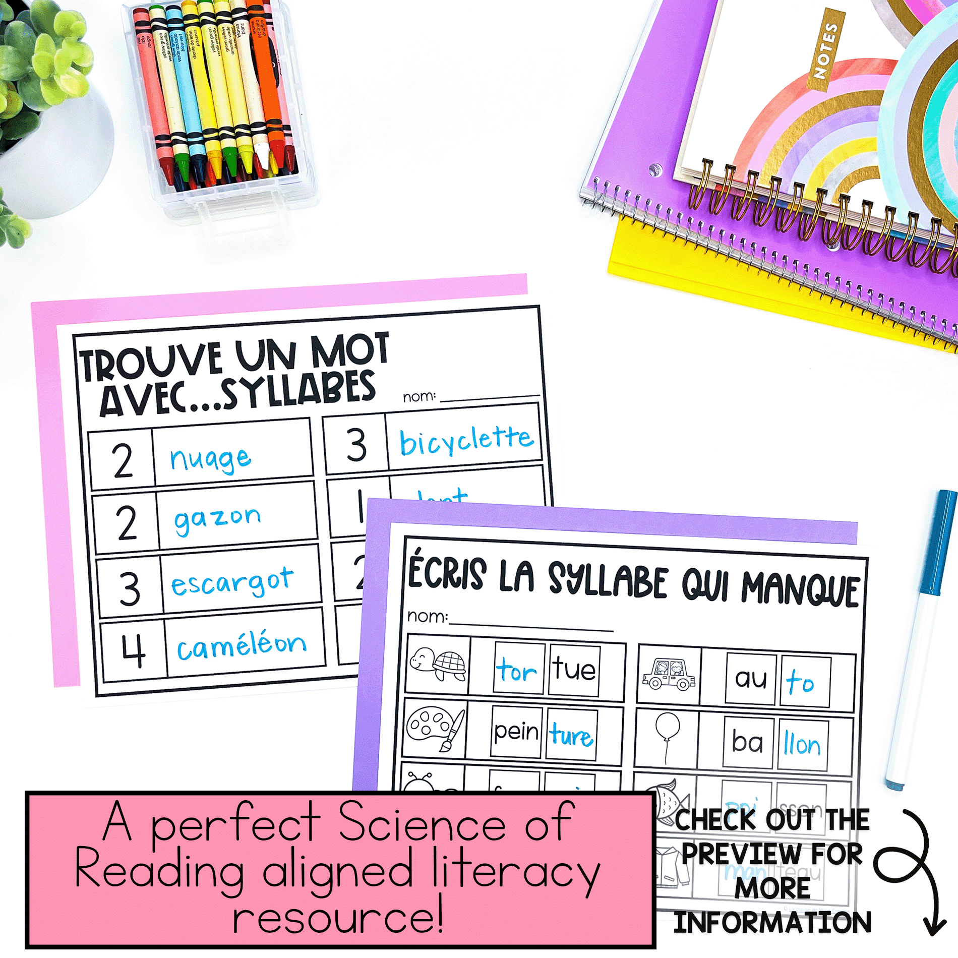 Lead your students to learn important phonological awareness skills needed in order to learn how to read in French. With this resource, your students will quickly become pros at syllables in French! And the best part? It comes with a French syllable assessment at the end!