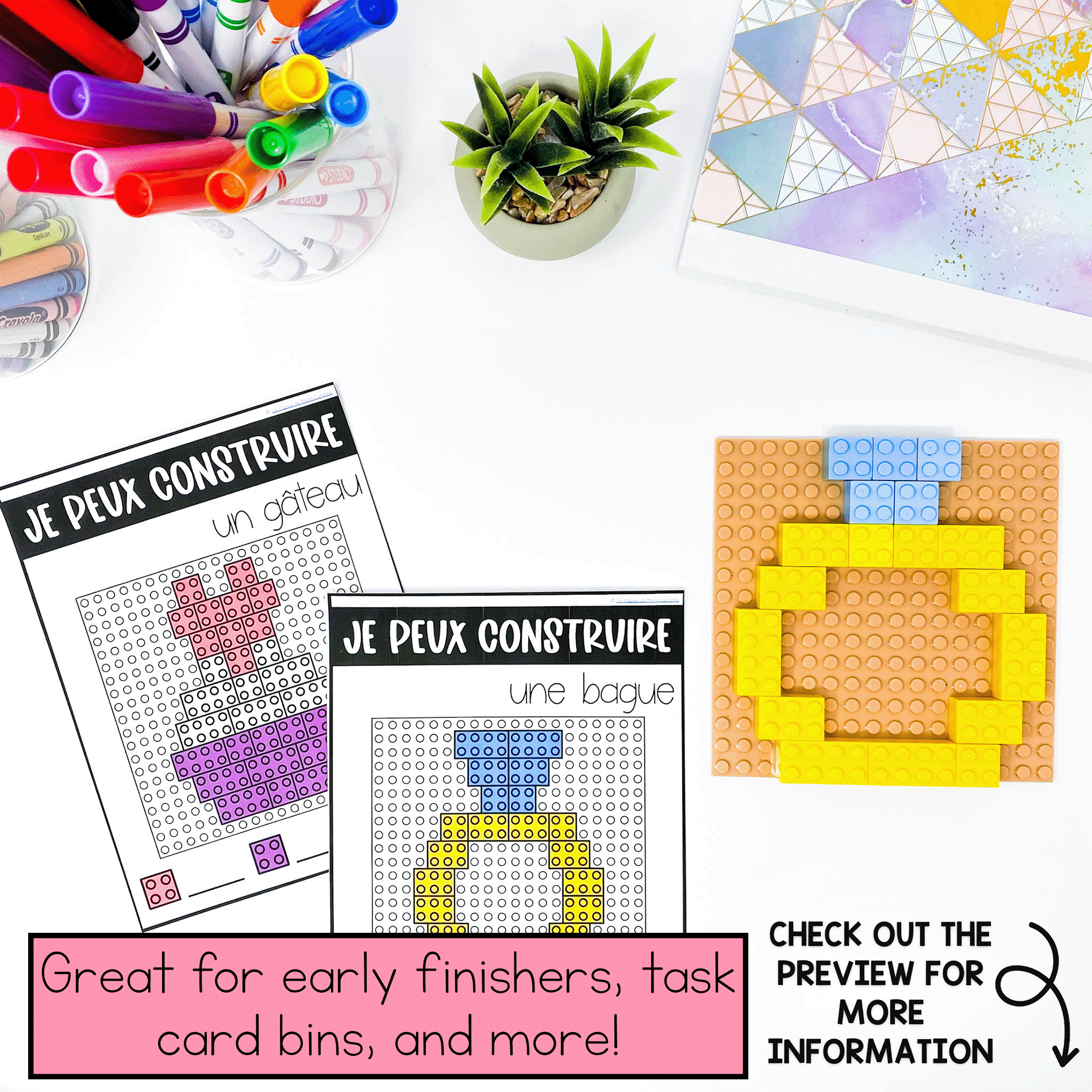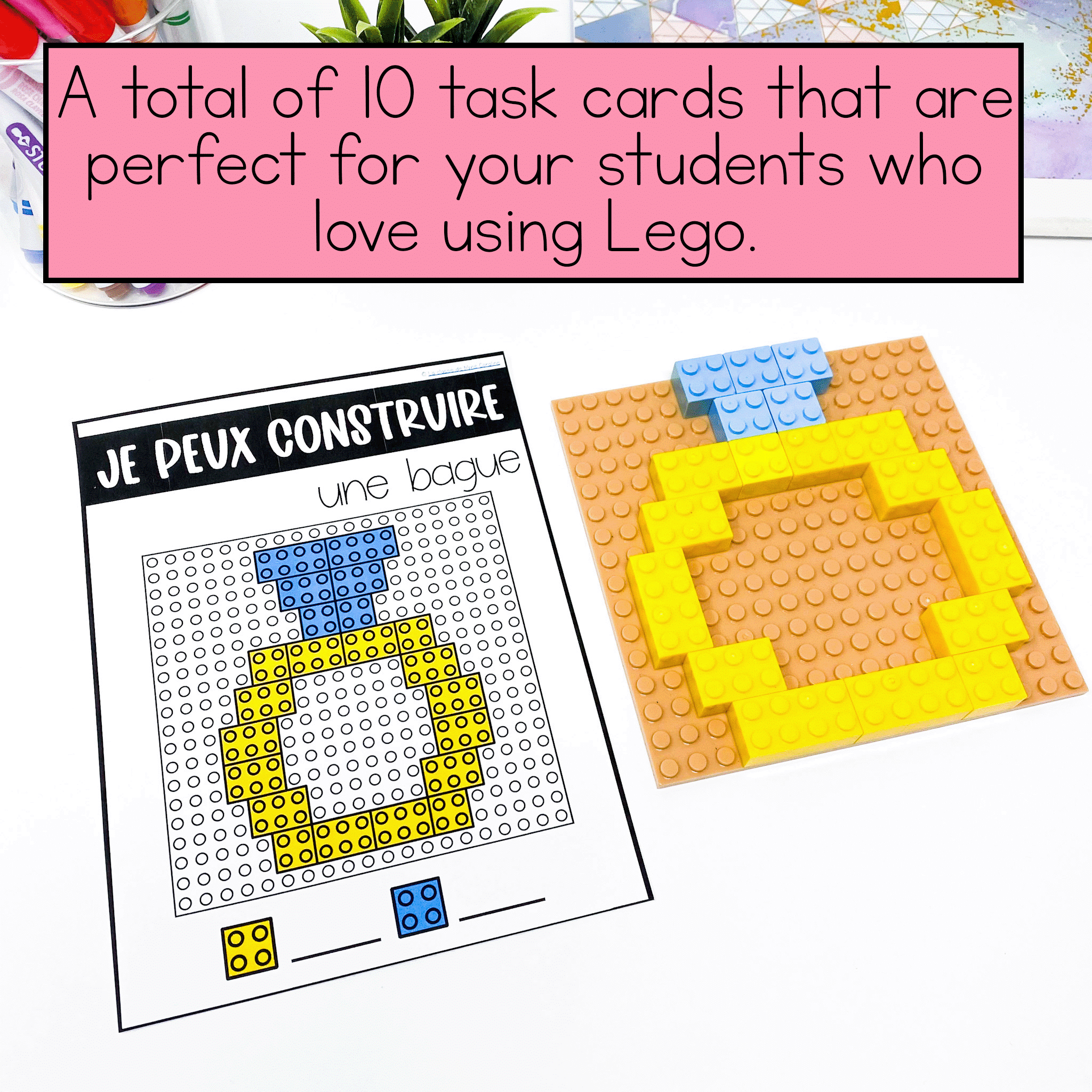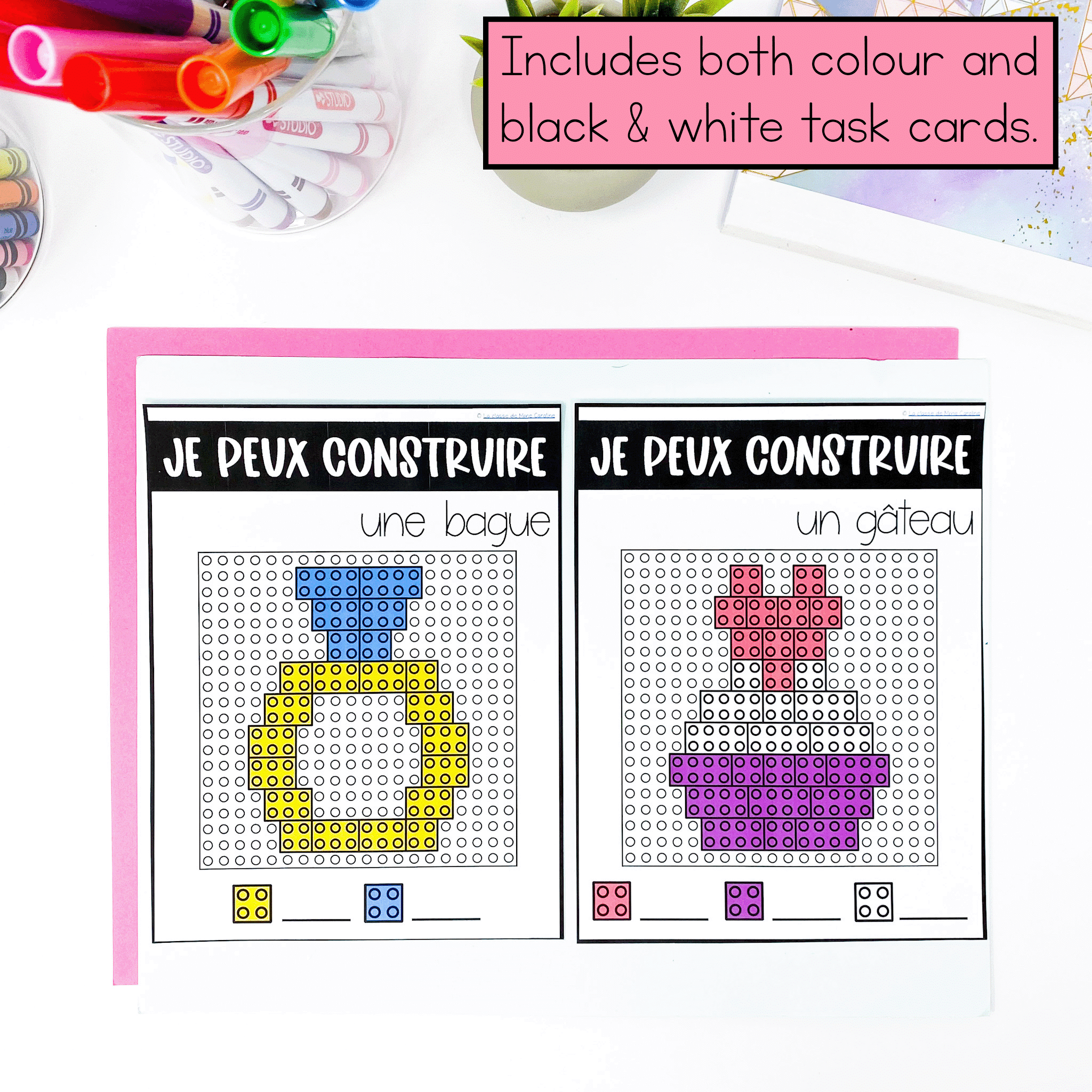 French lego task cards are perfect for early finishers or as a building centre in your French kindergarten class.