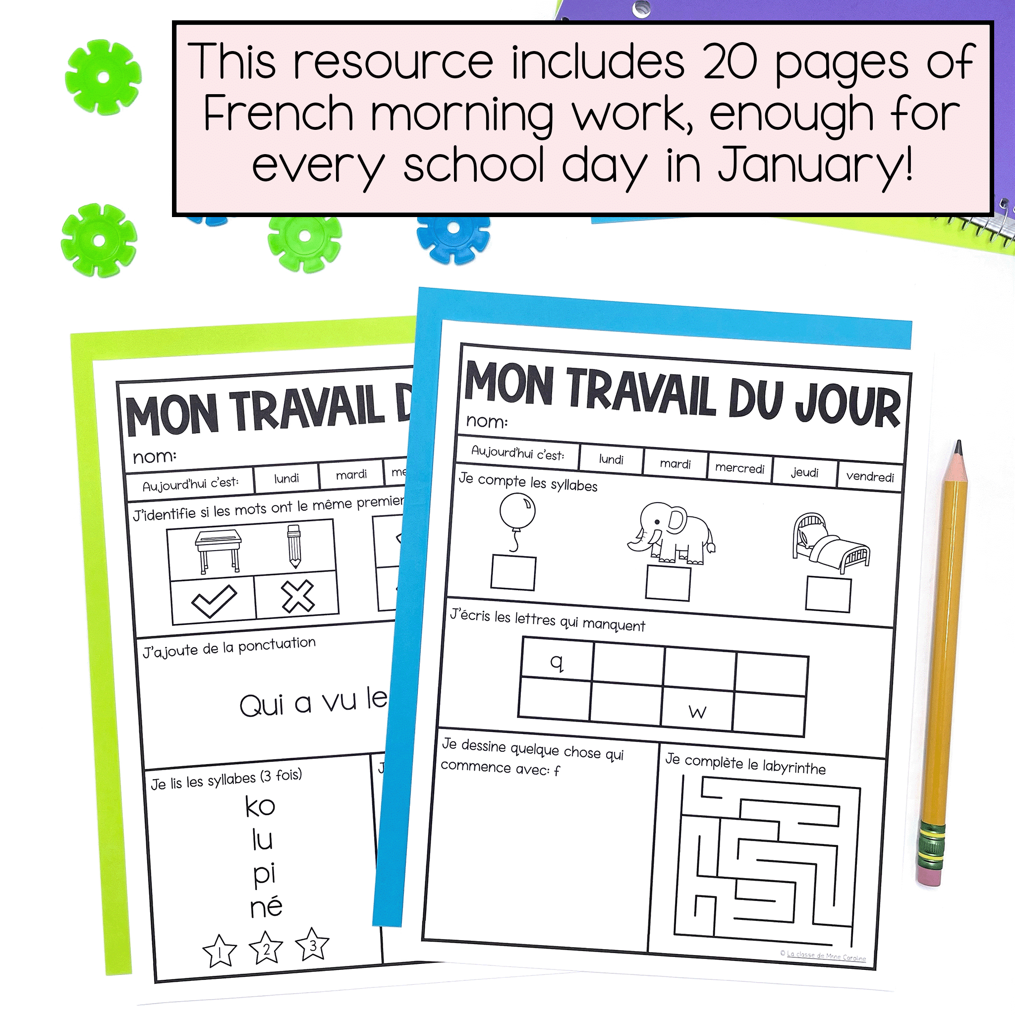 Grade 1 French Morning Work for January – Le travail du matin pour janvier 1ère année