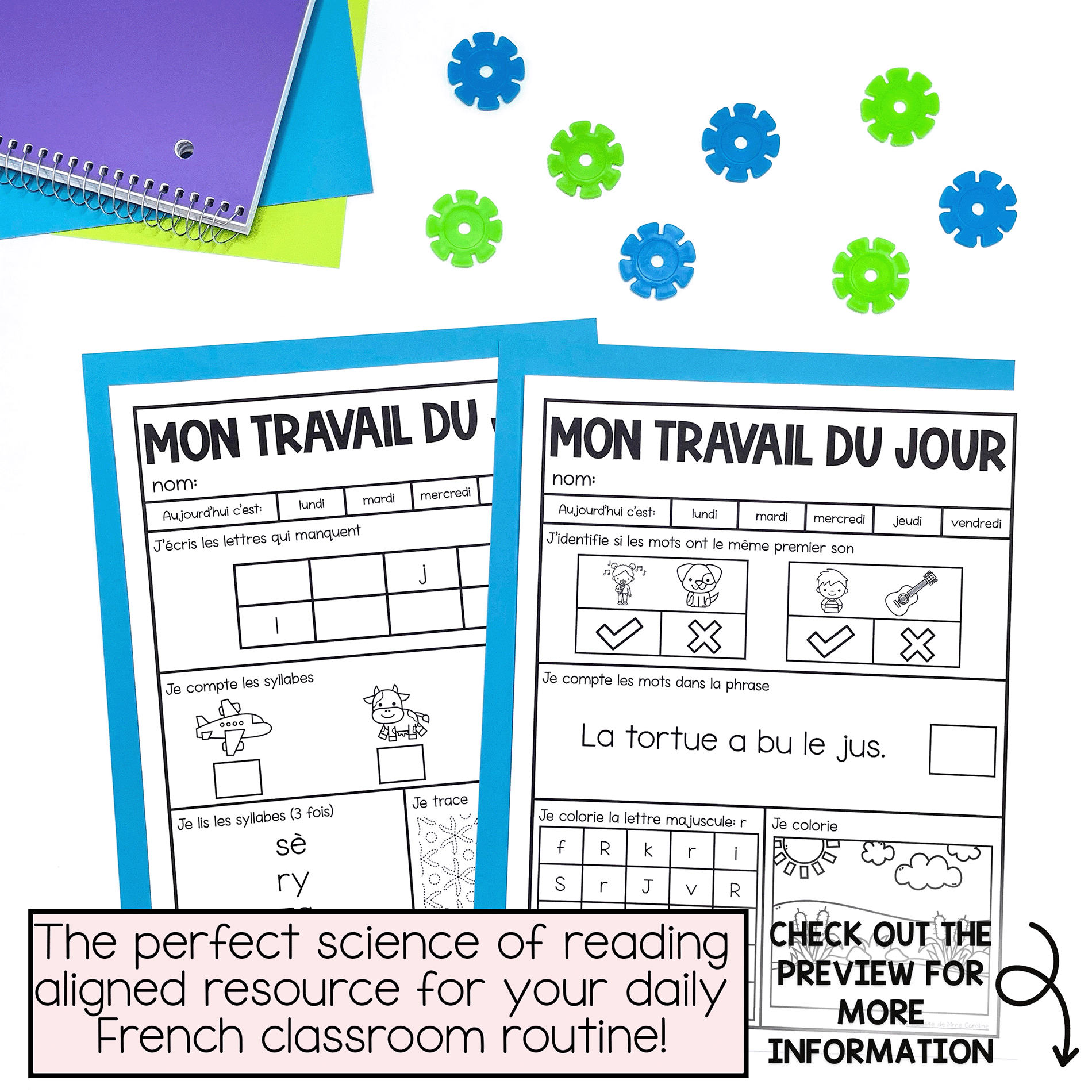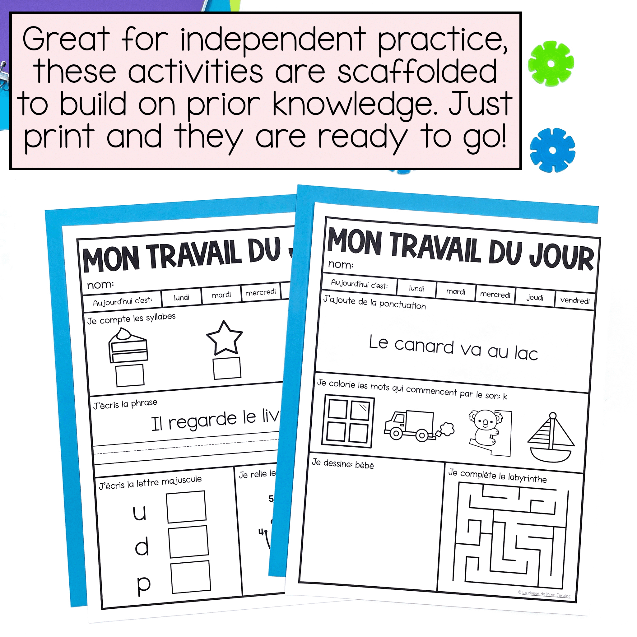 This set includes 20 different worksheets – one for every school day in the month! Simply print and go – this low-prep resource is read to be used in your class starting tomorrow. Aligned with the Science of Reading in French, these daily morning work activities will be a fantastic addition to your daily routine.