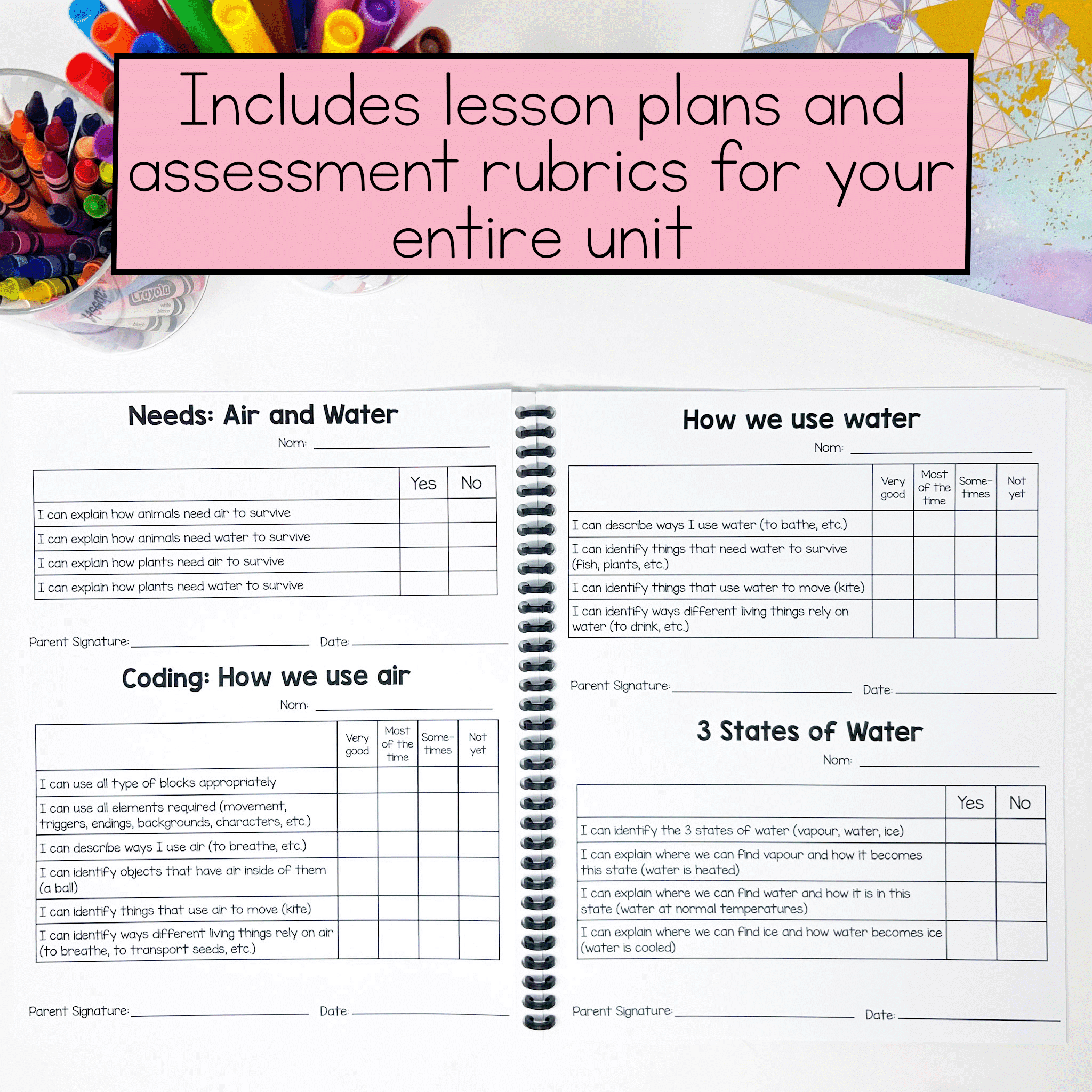 This Air and Water in the Environment science unit includes hands-on activities, experiments, coding activities and assessments for your Grade 2 students. The lesson plans included make this unit ideal for new teachers, leaving for a substitute, and for veteran teachers who want to refresh their science resources.