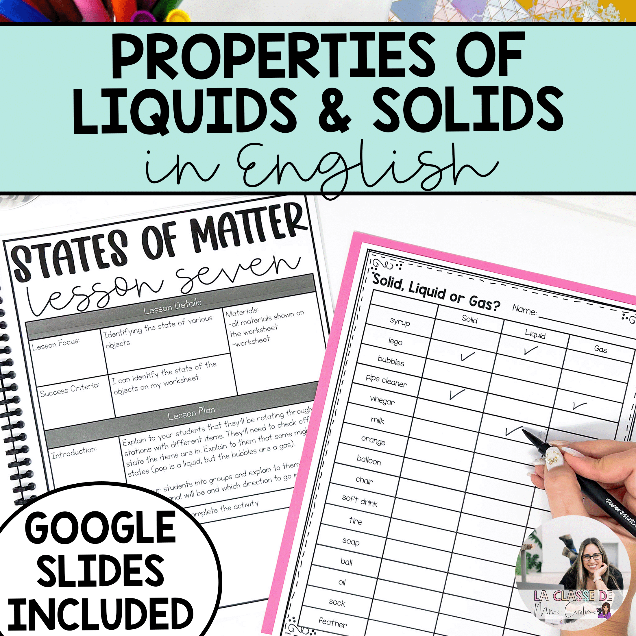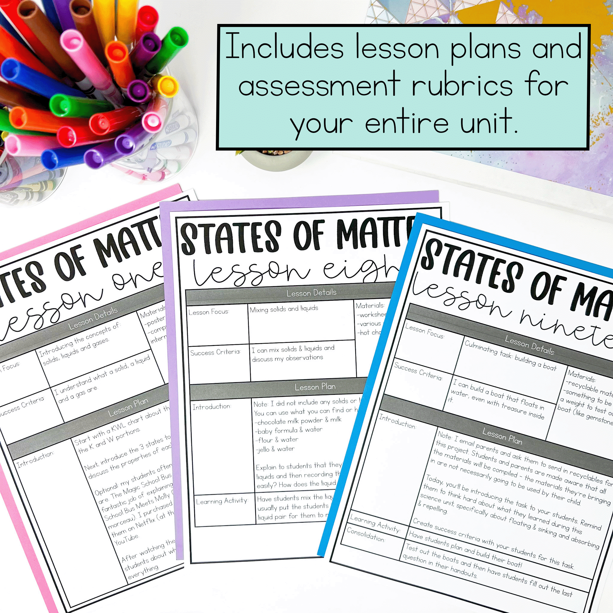 This complete science unit will help your students to dig deeper and develop a greater understanding of the science concepts for States of Matter: Properties of Solids and Liquids. Your students will love learning about matter and you’ll love that this pack comes with lesson plans & assessments!