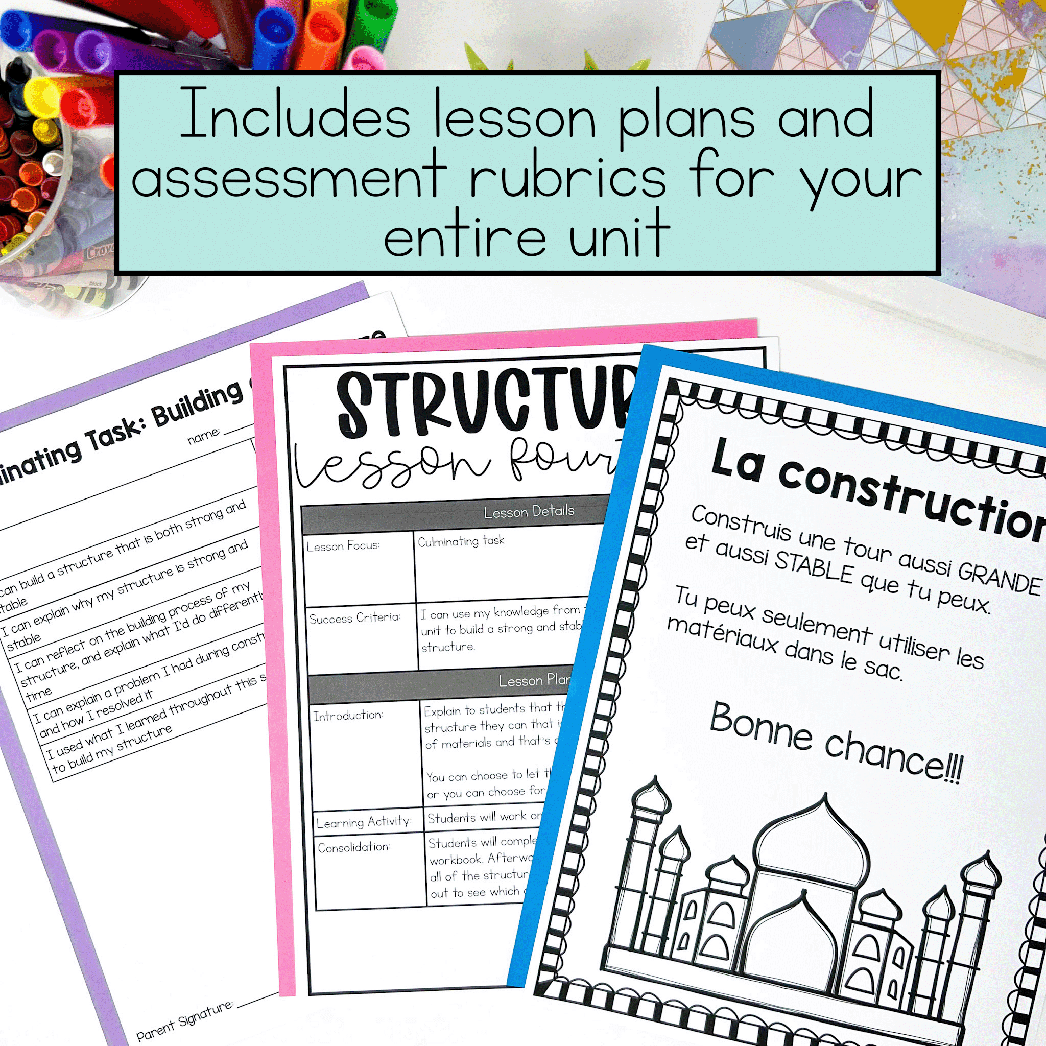Grade 3 Strong and Stable Structures Unit in FRENCH – Les structures solides et stables