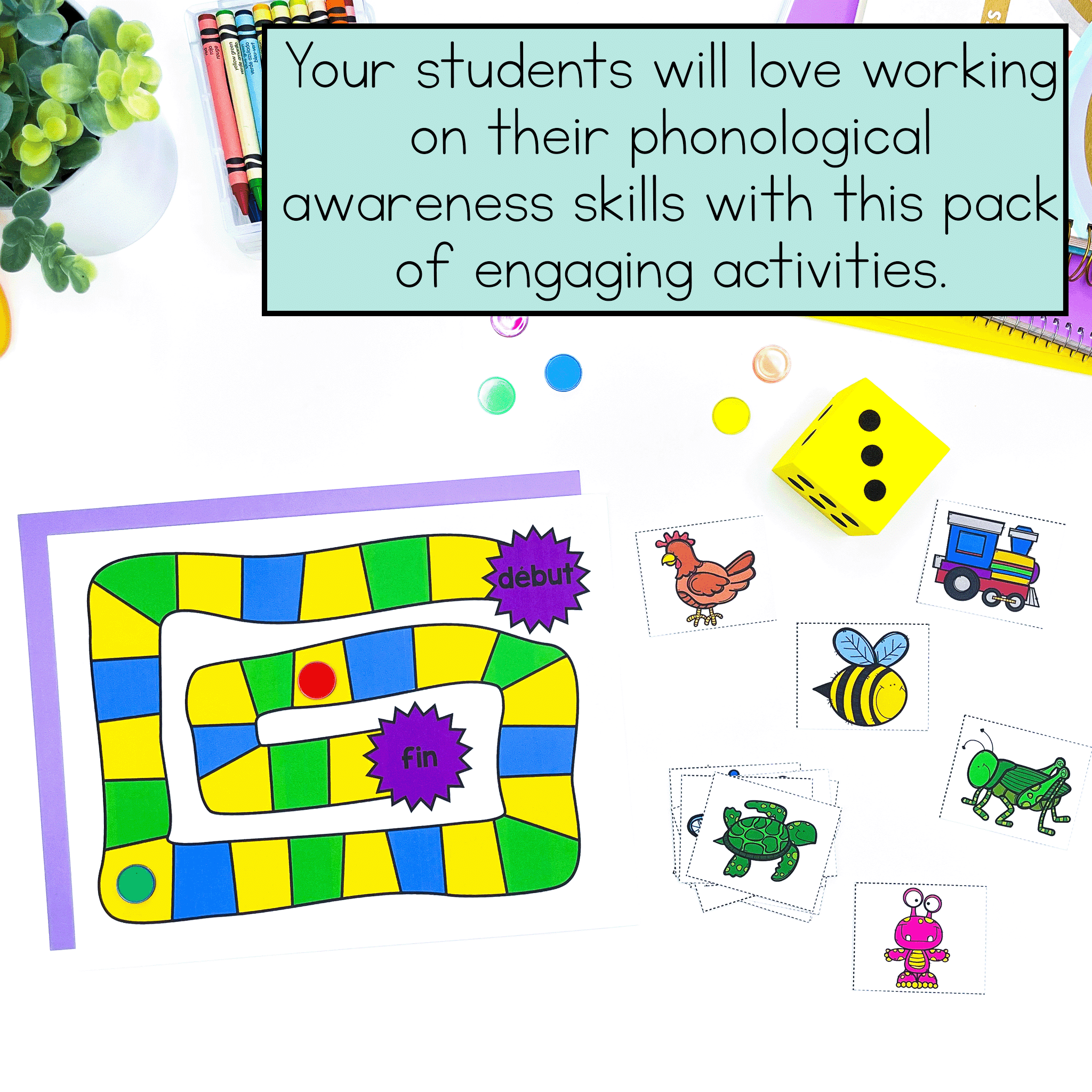 This Phonological Awareness Pack is designed to make teaching early French reading skills fast, fun and effective. This kit can be used for:
