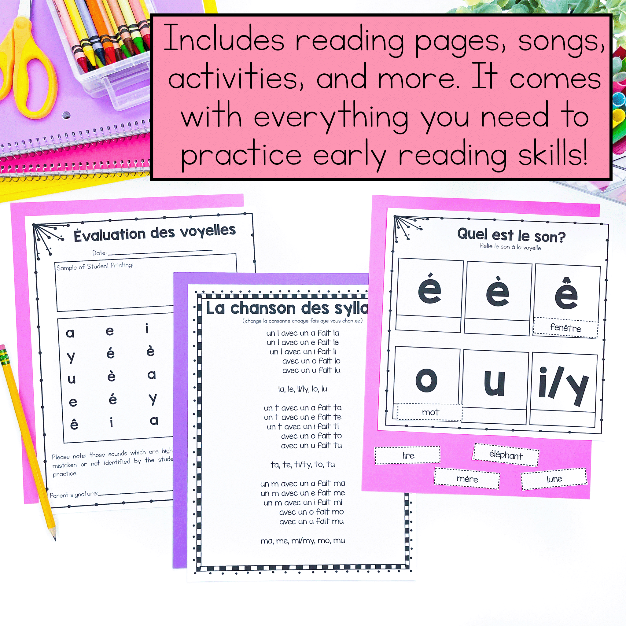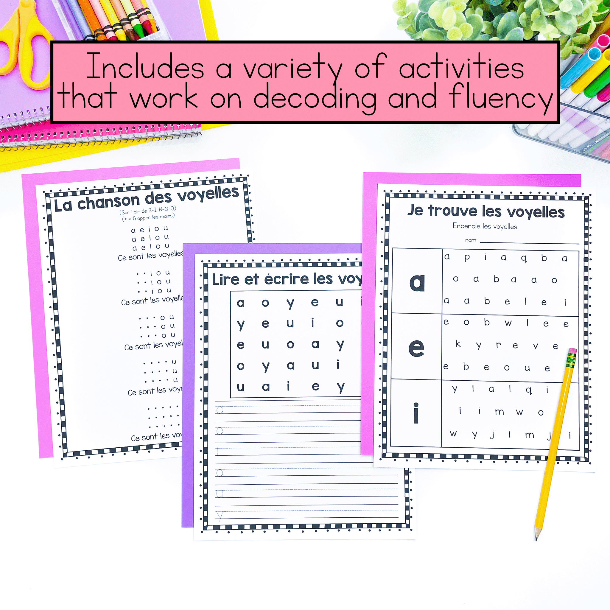Make teaching French reading engaging with this pack of Science of Reading aligned vowel activities. This set includes a variety of decodable reading pages, activities, assessments, and more!