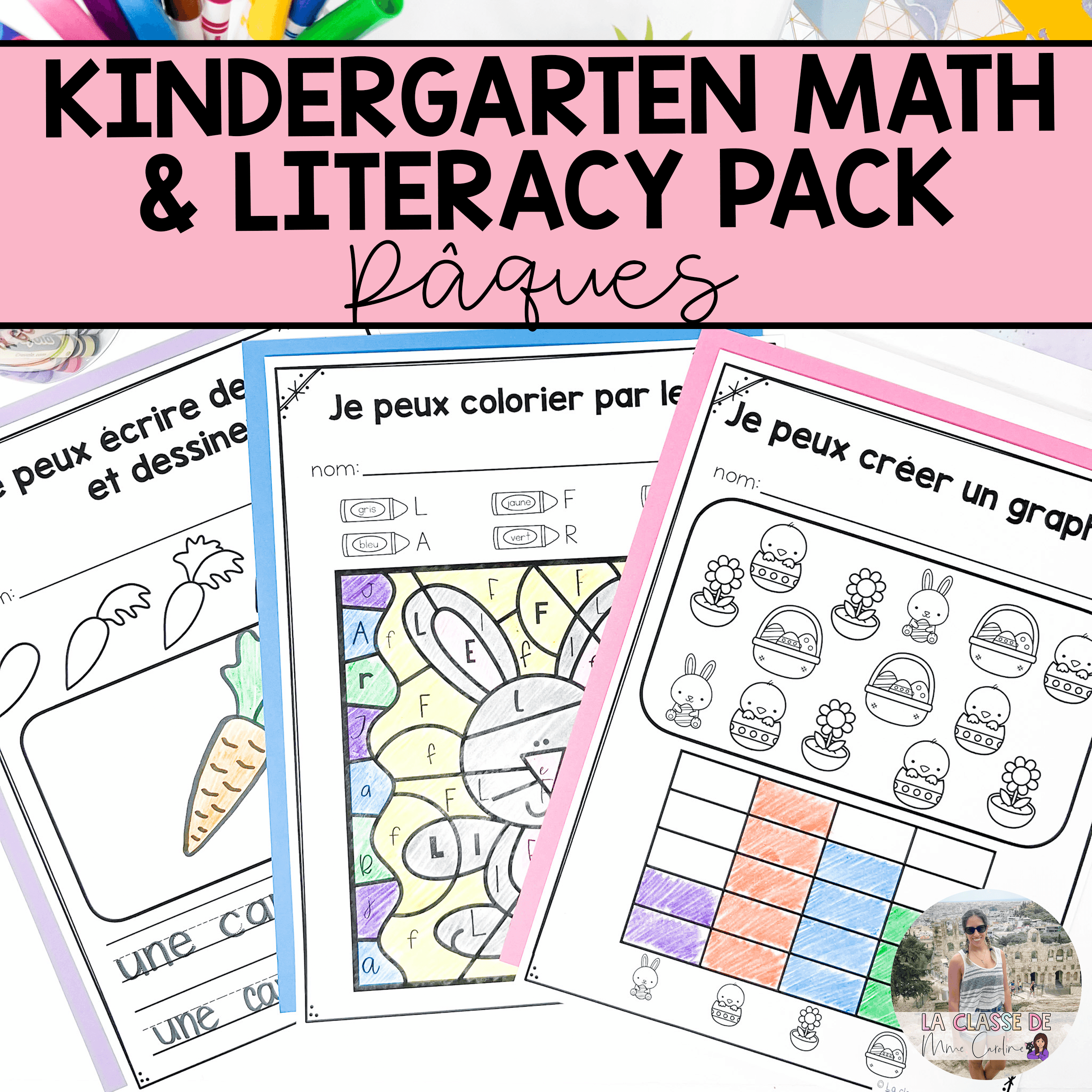 Are you looking for simple but engaging French Easter math and literacy worksheets for maternelle? This NO PREP kindergarten Math and Literacy pack is perfect for you! It contains 30+ pages of activities to work on various math, literacy and fine motor skills. Your kindergarten students will love the Pâques theme while they work on their math and French skills!