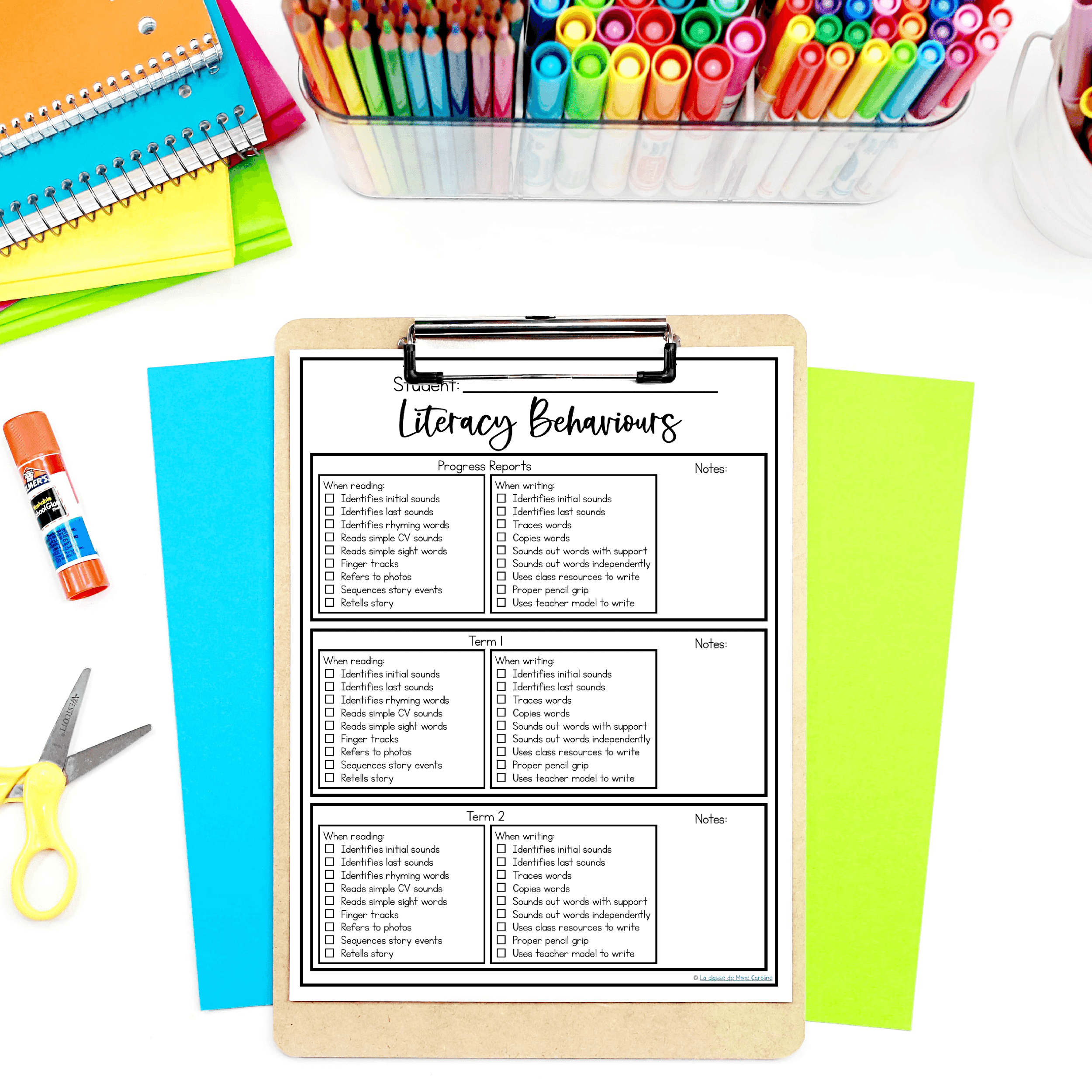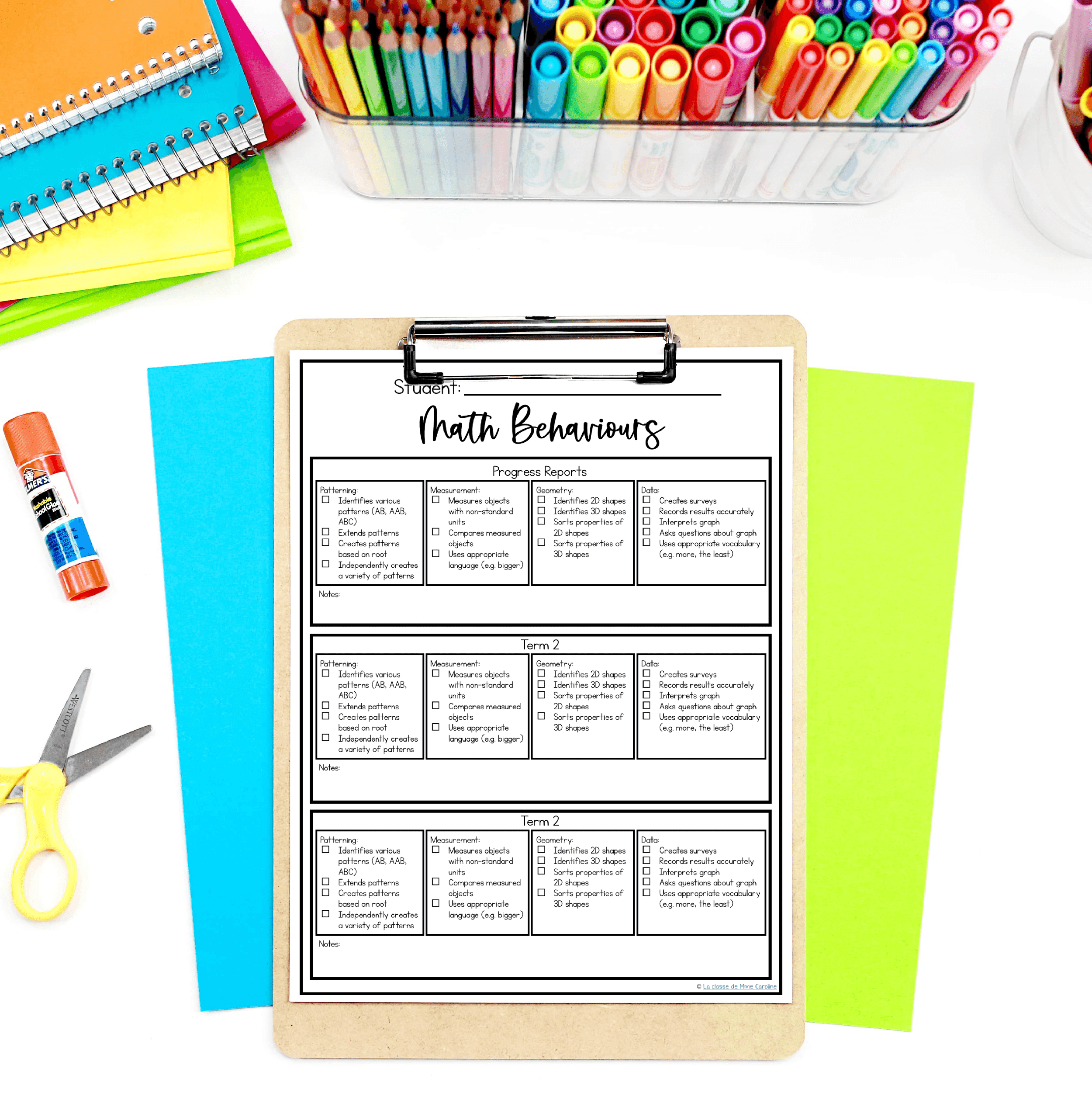 This Math and Literacy Behaviours checklist is a quick way for you to track where your students are as well as what growth they’ve made through the 3 terms. It includes the same look fors for all 3 terms, so you can easily use these as a quick assessment tool to see you can quickly see which skills they’ve gained and when. As well as the areas in which they are struggling. This can be used both for French and English – it is not language-specific!