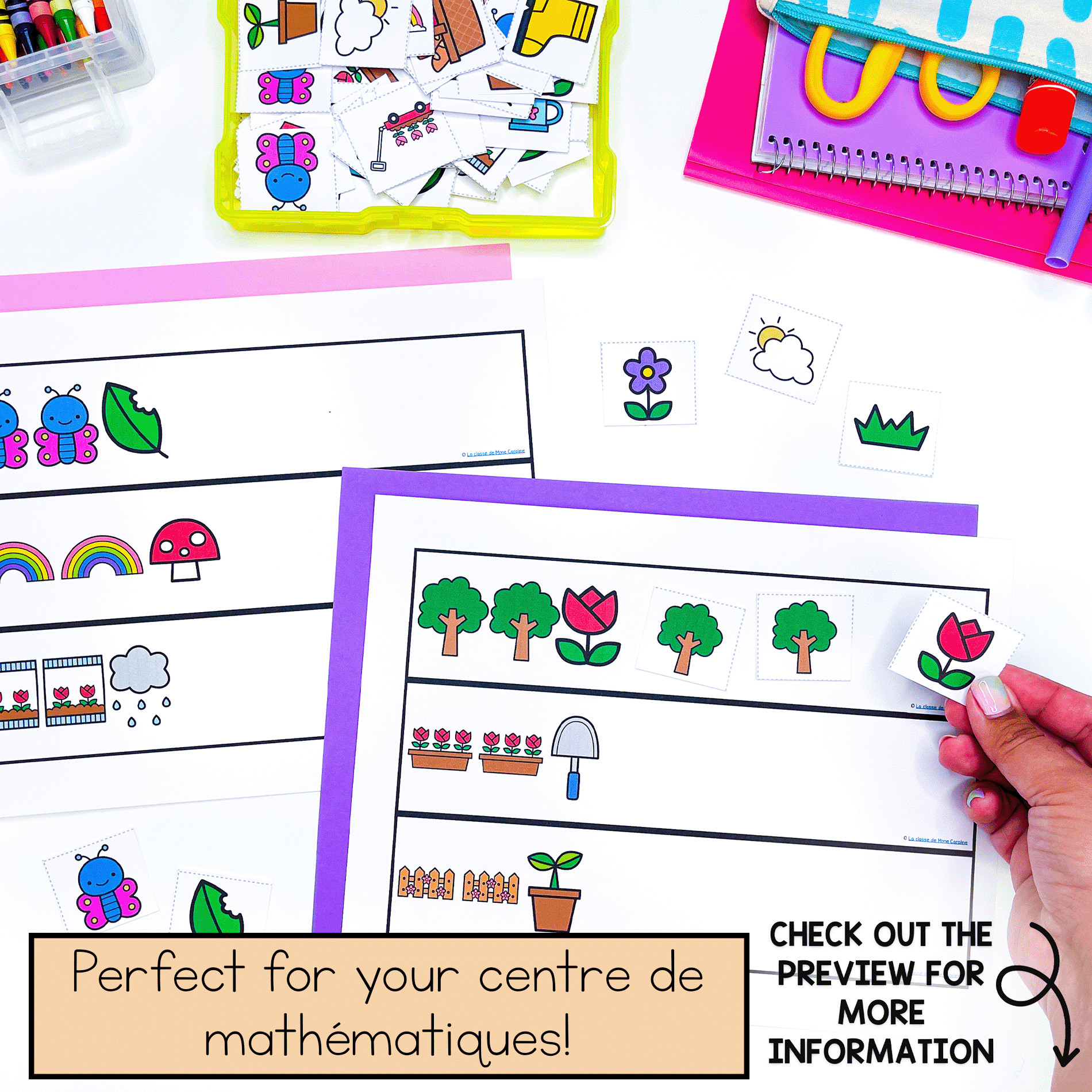 Lead your students to discover concepts of les suites with this centre de mathématiques pour la maternelle. Your students will love practicing patterning so much that they won’t realize how much they’re learning!